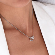 The bestselling Bevel necklace has re-emerged, better than ever. The linked circles have been upgraded and are now available in sterling silver set with sparkling cubic zirconia, intricately weaving its sparkle around each edge of the encircling Bevels.