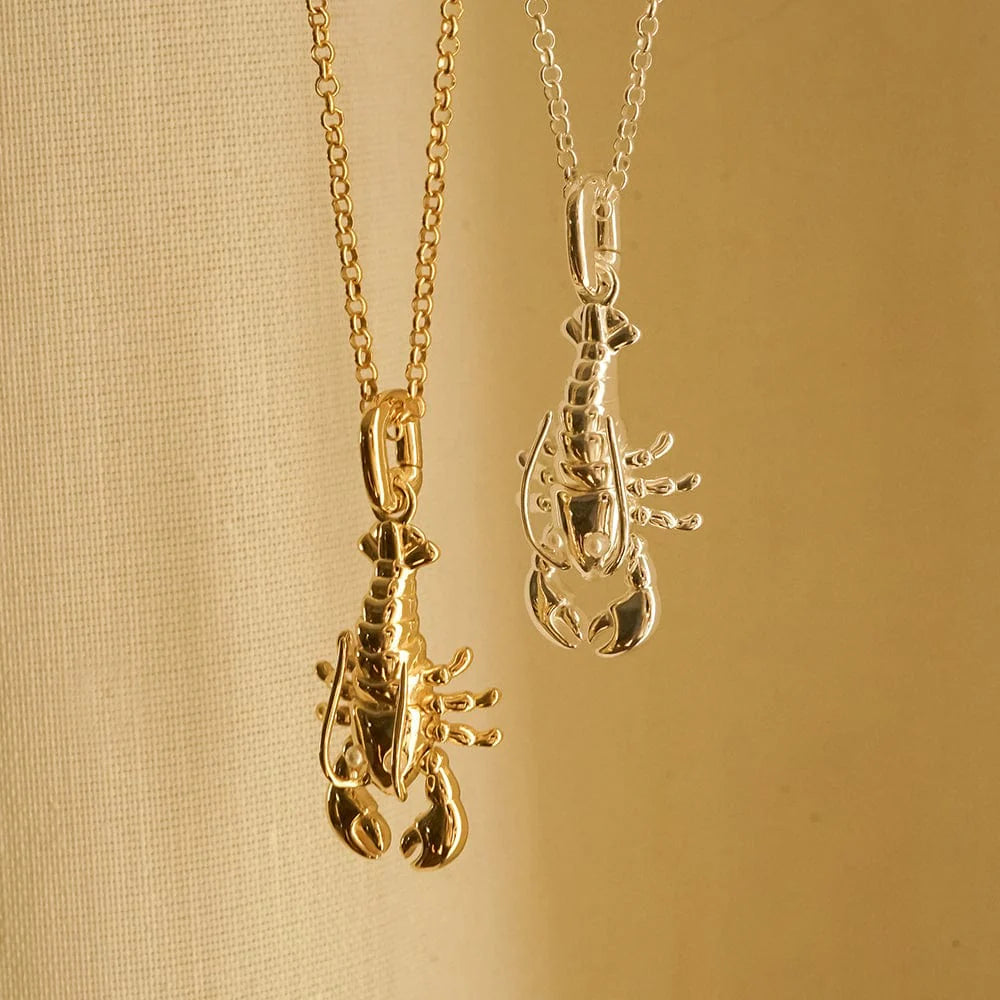 You are my lobster - This necklace brings a unique and playful element to your necklace stack. Hung on a rolo chain, this lobster pendant features movable claws, pearls for eyes and a tactile sculptural shape, crafted in 100% recycled sterling silver, this piece is the hidden gem you need in your jewellery box.