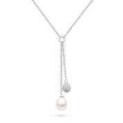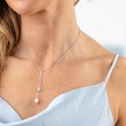 The Coast Pebble Glisten Pavé & Pearl Lariat Style Necklace is a fusion of the timeless appeal of Freshwater Pearls, the enchanting sparkle of Cubic Zirconia, and Kit Heaths best-selling Coast Pebble design. Crafted from premium Sterling Silver, this coastal-inspired necklace features two beautifully cascading split drop pendants in a lariat style, creating the iconic Y-shape especially suited for lower necklines.