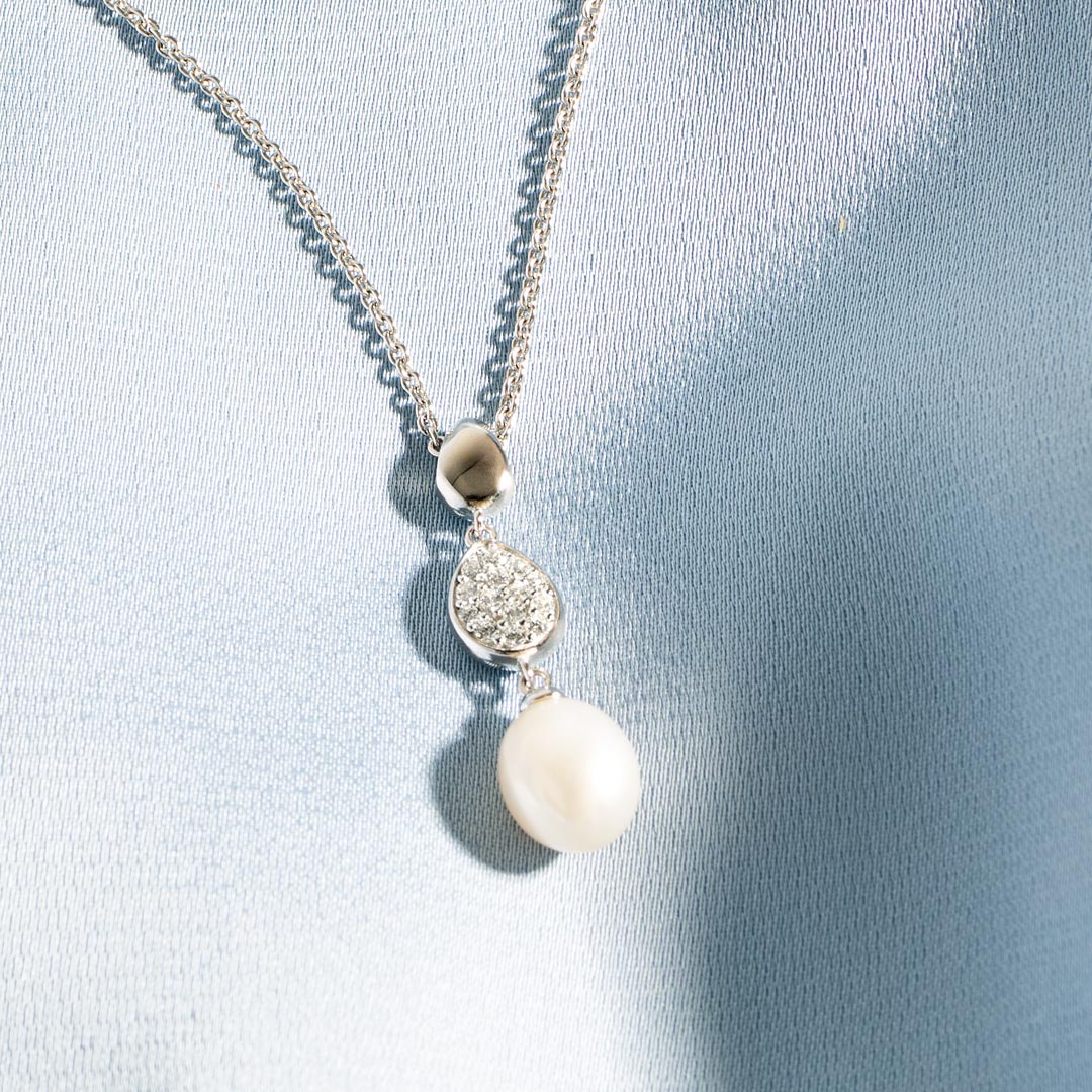 Bringing together the best of two worlds, the Coast Pebble Glisten Pavé Pearl Necklace combines the best-selling style of the sleek Coast Pebble shape with the lustrous shine of Freshwater Pearls and the enchanting sparkle of pavé-set Cubic Zirconia.