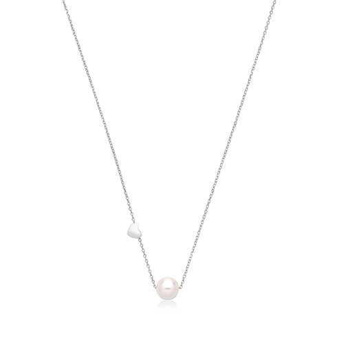 Crafted in sterling silver, this heart and pearl necklace is so dainty and pretty, beautiful for a special occasion or just enough for everyday wear.