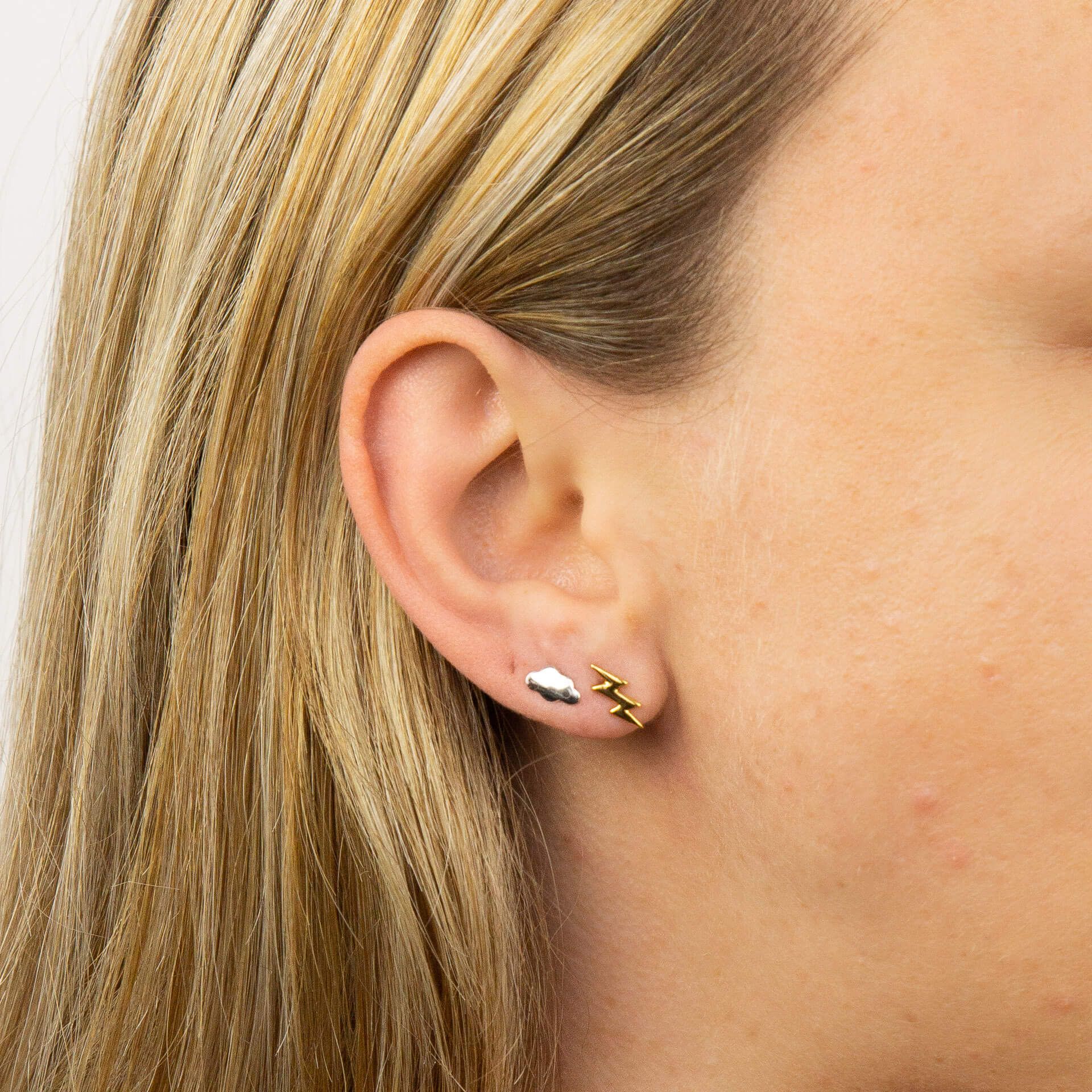 Be as bold as a lightning bolt in the night sky with these striking cloud and lightning bolt stud earrings. Crafted in sterling silver and with a yellow gold plating on the lightning bolt, you will be sure to stand out from the crowd with these earrings.