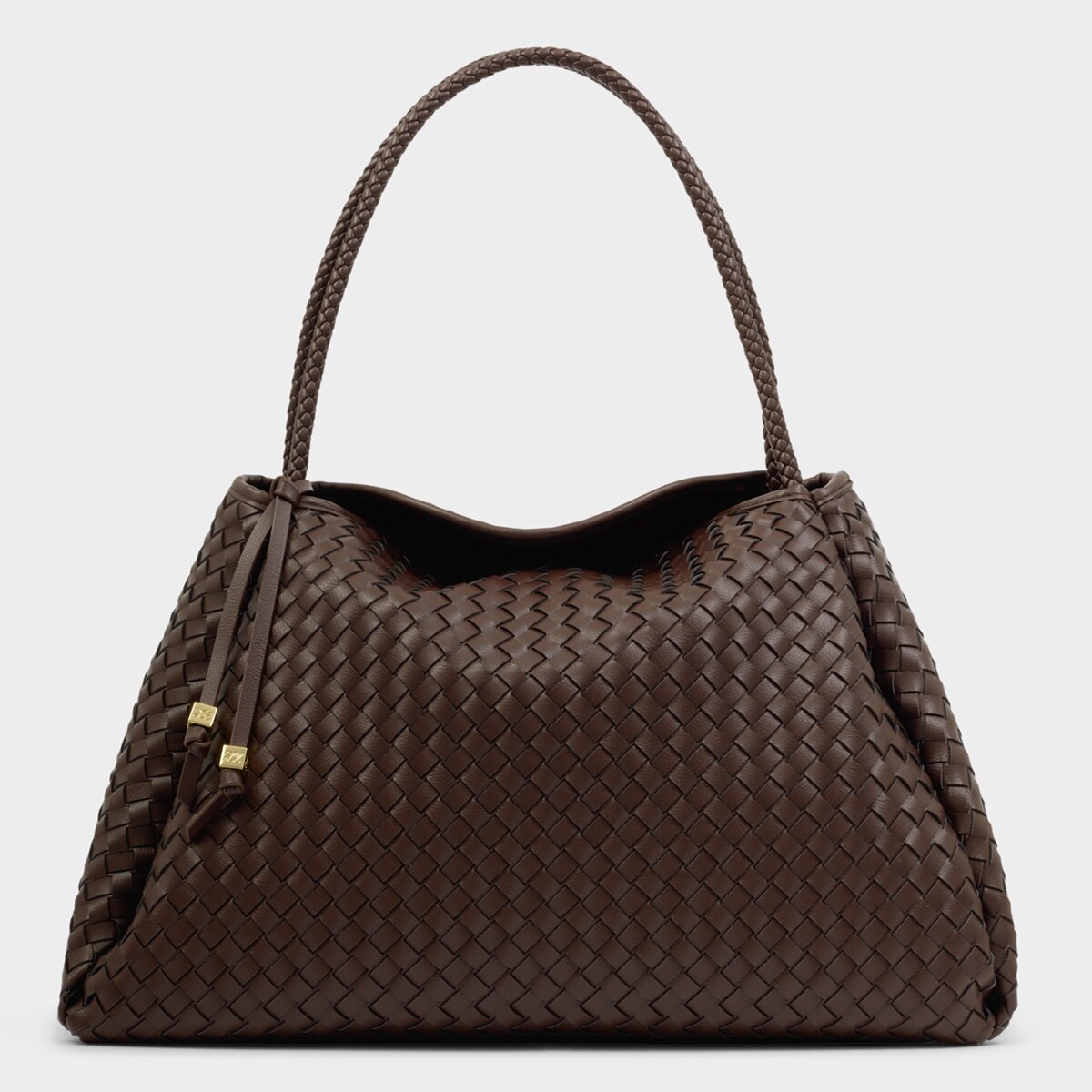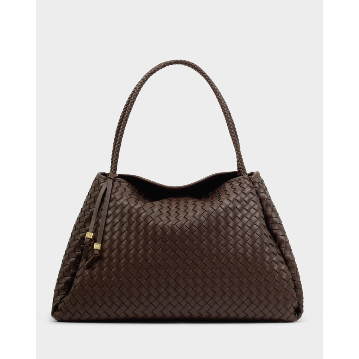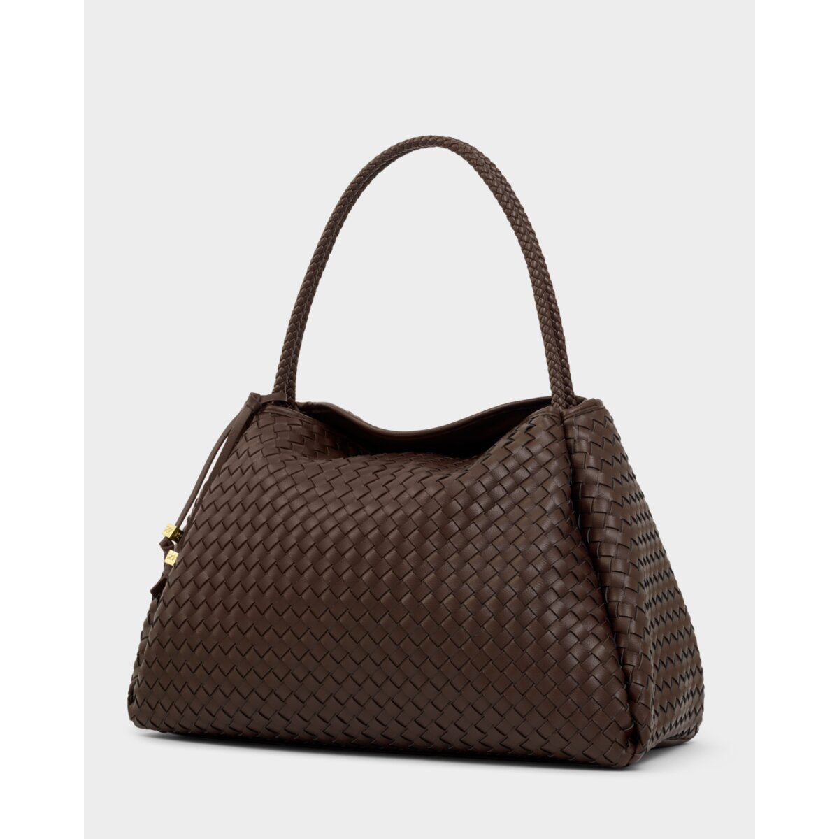 The Nova Hand Woven Large Shoulder Bag in Chocolate showcases soft-to-touch woven vegan leather, adding texture and dimension to any look. Considered details include an easy magnetic closure, an internal zip pocket for valuables.