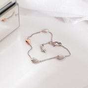 Sealed with a Kiss, our heart station bracelet is delicately finished in rhodium and rose gold plate for that touch of sweet, sweet romance.