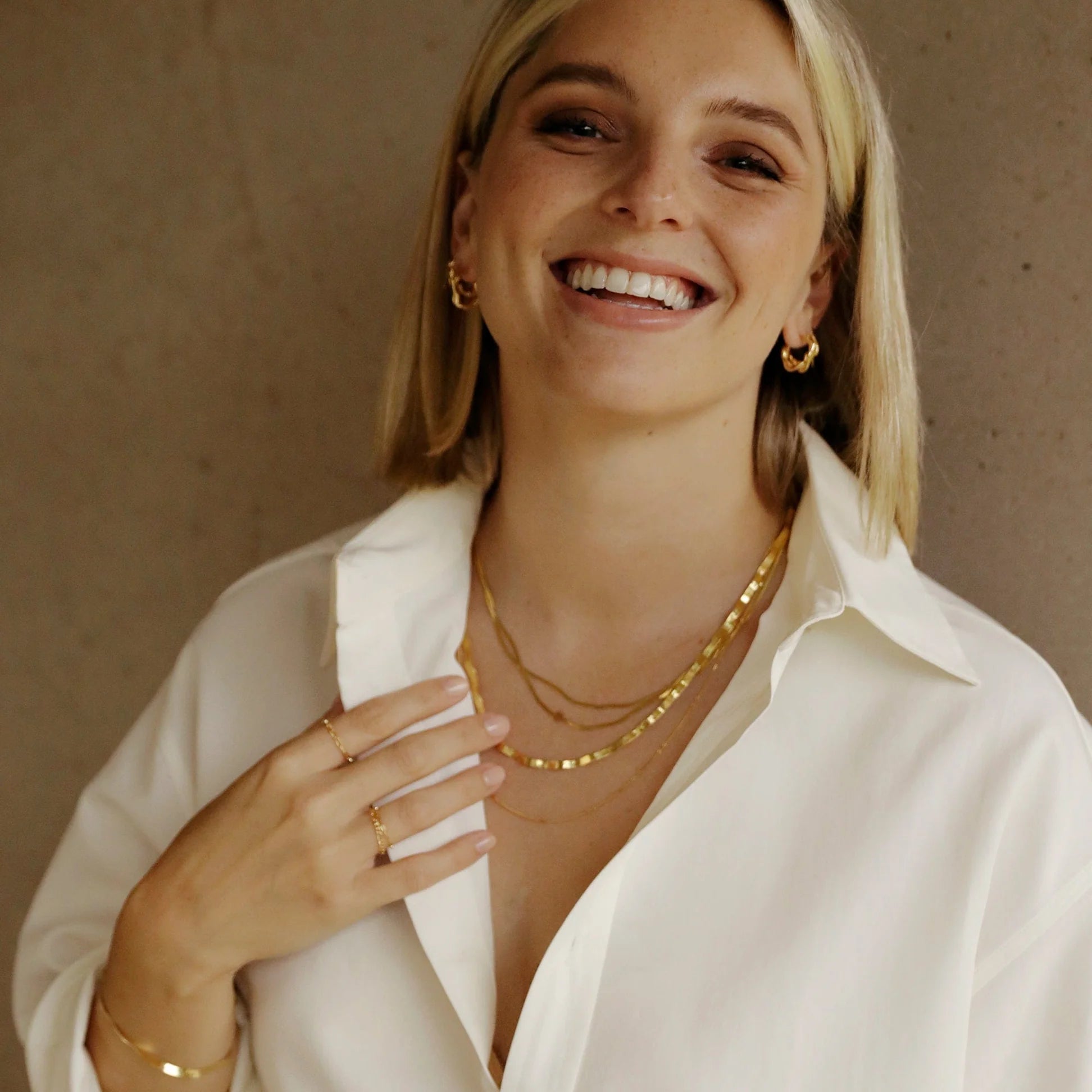 The epitome of elegant styling, the Estée Lalonde Parallel Sake Chain Necklace features two beautifully refined chains that sit perfectly together. Perfect layering piece.