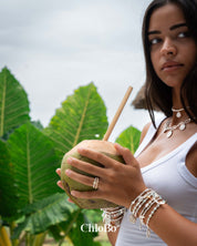 Drawing inspiration from the spiritually notable Uluwatu Temple, this detailed piece features a hamsa hand charm, offering protection from negativity, while the evil eye symbol attracts positive energy into your life. A harmonious blend of spiritual safeguarding and uplifting energies.