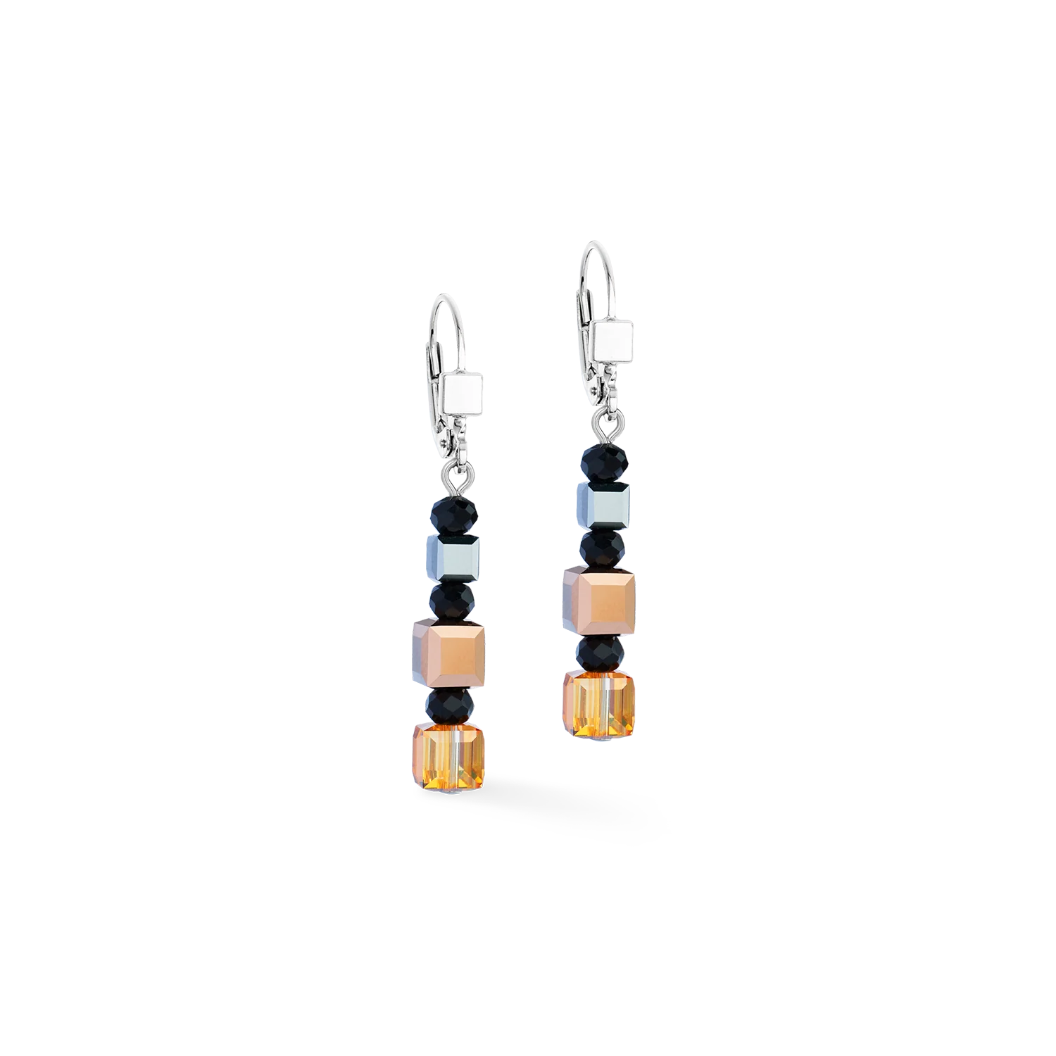 The GeoCUBE® earrings Tricolor by CDL - Harmonious combination of rose, gold and black creates an elegant effect both day and night. Embellished with sparkling crystals and Swarovski® elements, they are an expression of modern elegance.