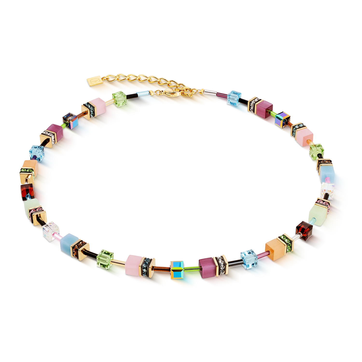 A touch of Art Nouveau in geometric perfection, the Art Nouveau necklace from the GeoCUBE® Iconic series seduces with pastel shades, bold colour accents and gold-coloured details. Each cube is part of a colourful composition that combines modernity and classicism.