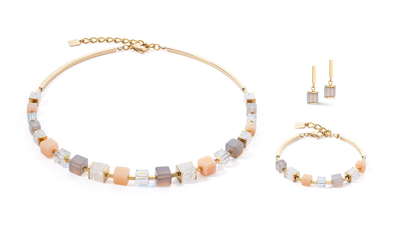 A beautiful, subtle design by Coeur De Lion is the previous statement necklace in the soft grey and peach. Make a statement with this necklace, with maxi cubes in 8 mm.