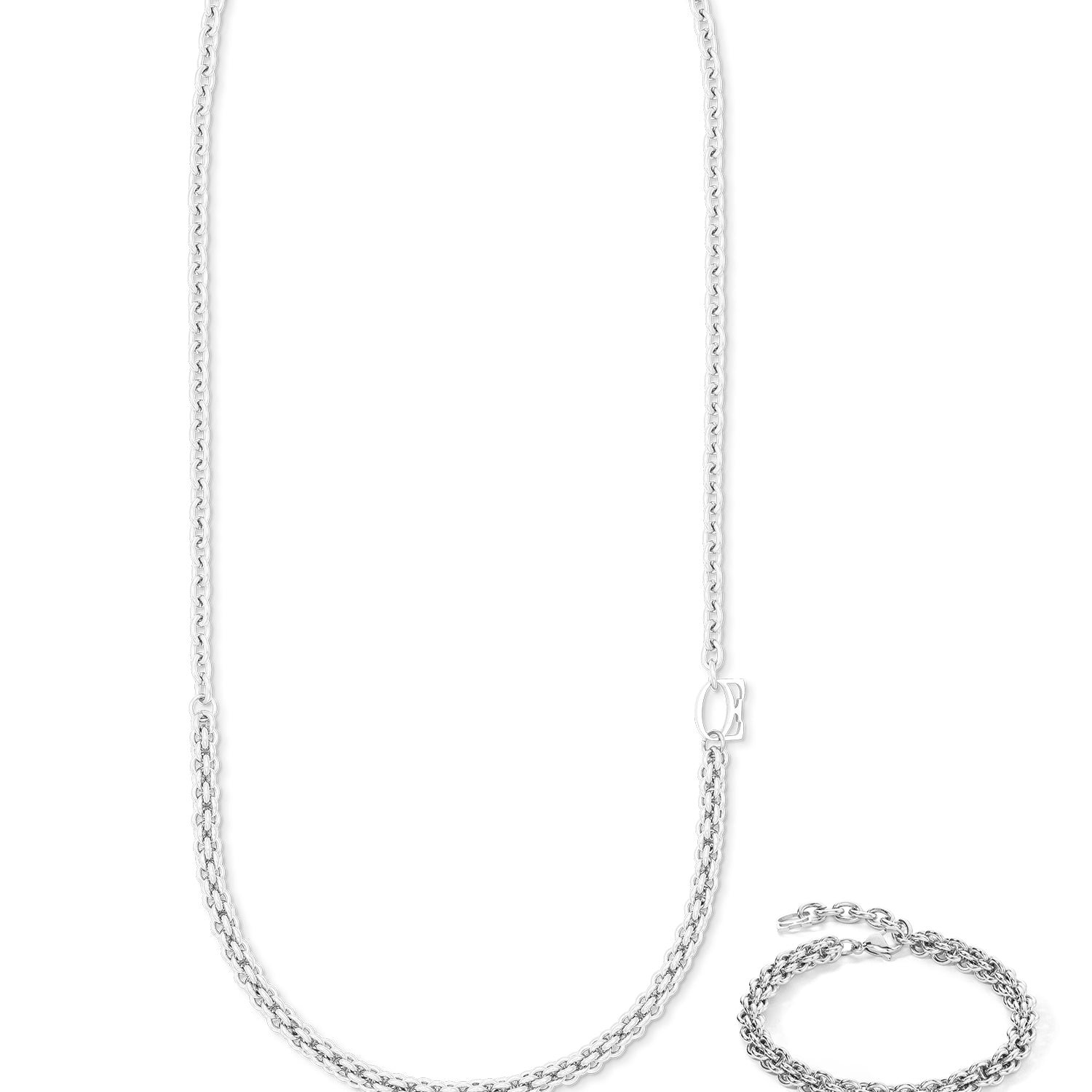 The fine link chain and the round linked mesh chain made from high-quality stainless steel harmonise perfectly with each other and add an elegant touch to your look. Accentuated with the new stylish CDL logo element, this chain is a real eye-catcher. Thanks to the two lobster clasps on the necklace, you can combine it with other pieces of jewellery and wear it in different ways. You can wear the necklace long and single-row or short and double-row.