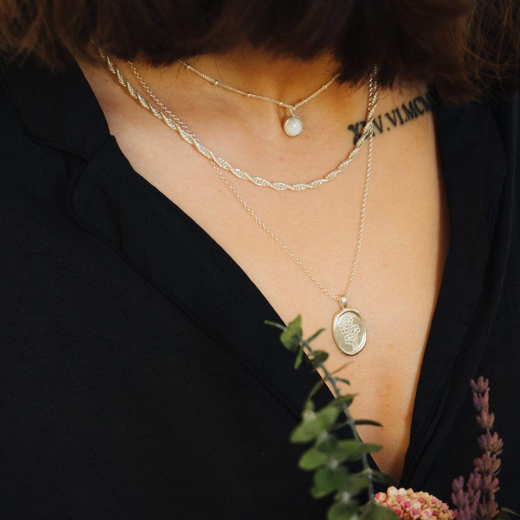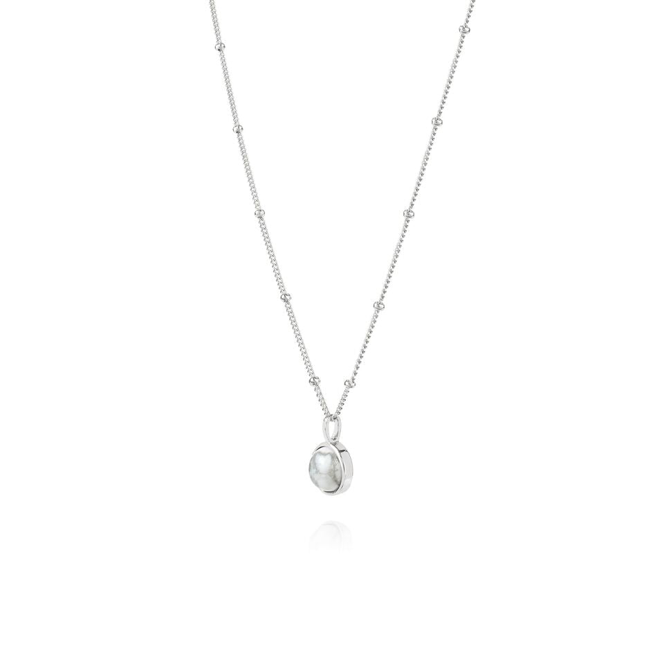 The ethereal white exterior of Howlite is thought to exude a sense of calm and absorb feelings of anger, strain or stress. Known to heighten concentration and sharpen the memory, this stone is useful when developing new skills or ideas. The Howlite Healing Stone necklace is hand crafted in sterling silver featuring a round Howlite stone and an on-trend bobble chain.
