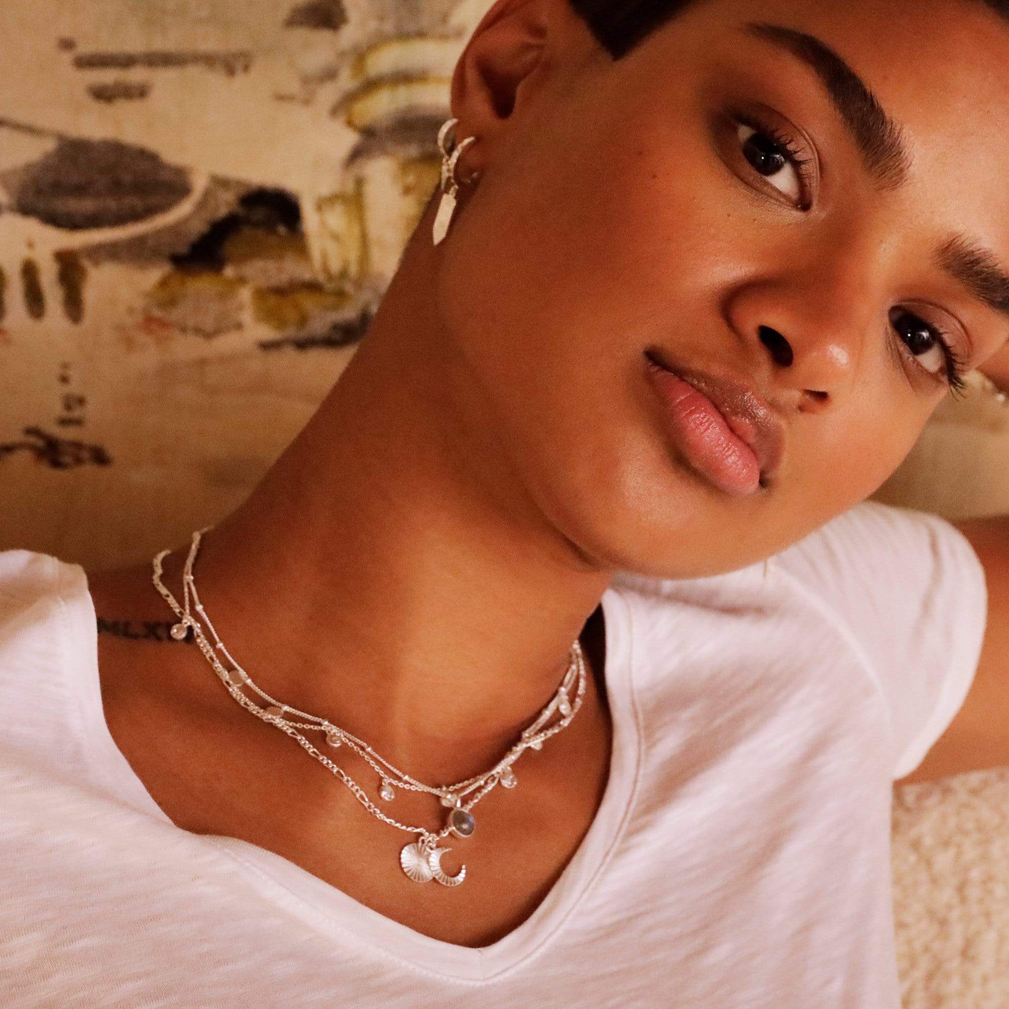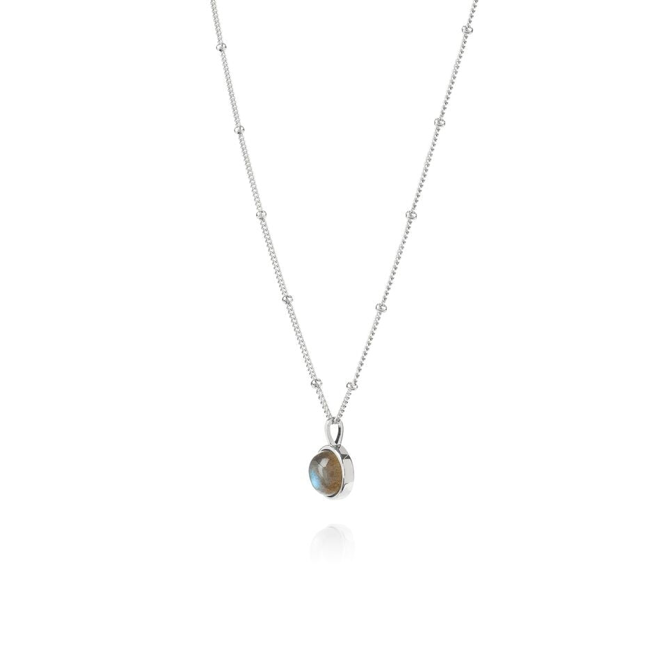 The iridescent sheen of Labradorite is said to awaken the inner spirit and heighten awareness of one’s surroundings. A protector against pessimism, Labradorite helps us to push negative feelings aside and instead encourages us to be the best version of ourselves by eliminating insecurities and enhancing confidence. The Labradorite Healing Stone necklace is hand crafted in sterling silver featuring a round Labradorite stone and an on-trend bobble chain.