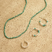 A low maintenance, high impact kind of piece. Reminiscent of sunny days and blue seas, each turquoise bead is unique in colour. A great base for layering or styled simply over over a white t-shirt.