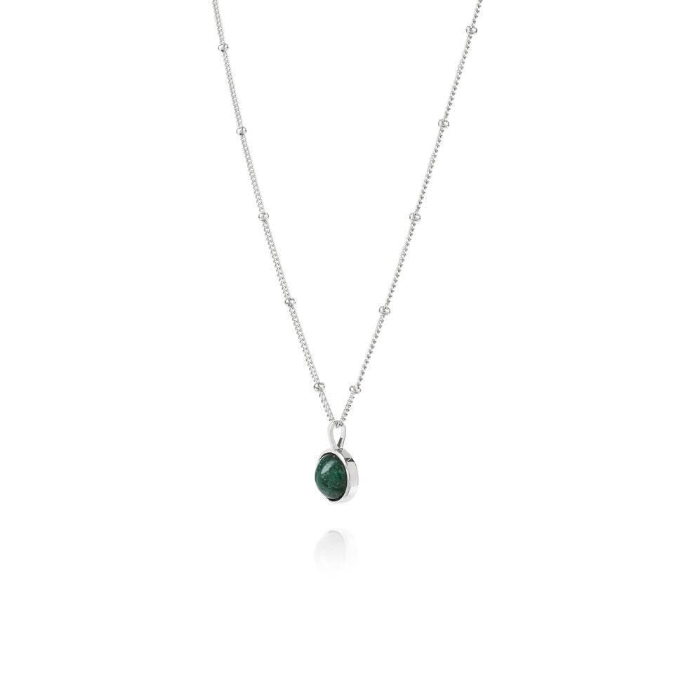 Thought to bring luck and prosperity to those who wear it, Green Aventurine is regarded as the stone of opportunity. Stimulating our need to persevere, it creates a sense of optimism and hope. Inspiring the imagination to enhance creativity, this stone helps to visualise alternative solutions and possibilities. The Green Aventurine Healing Stone necklace is hand crafted in sterling silver featuring a round Green Aventurine stone and an on-trend bobble chain.