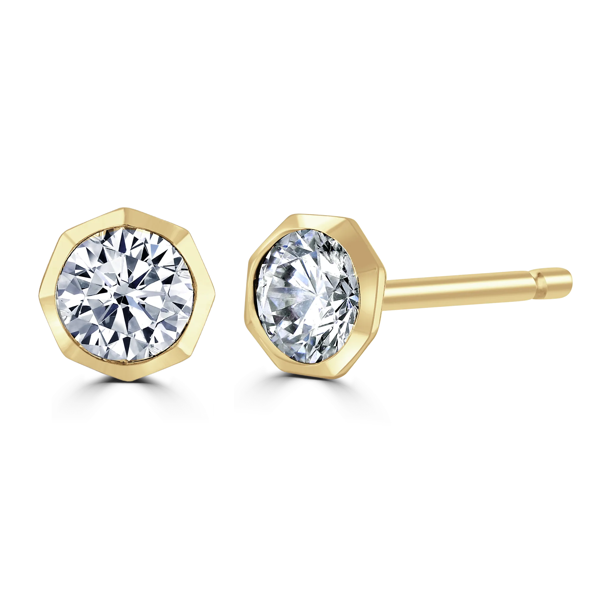 18ct yellow Gold with a hexagon bezel set lab grown diamond in a total 1.5 carat size, stud earring with yellow gold butterfly back.
