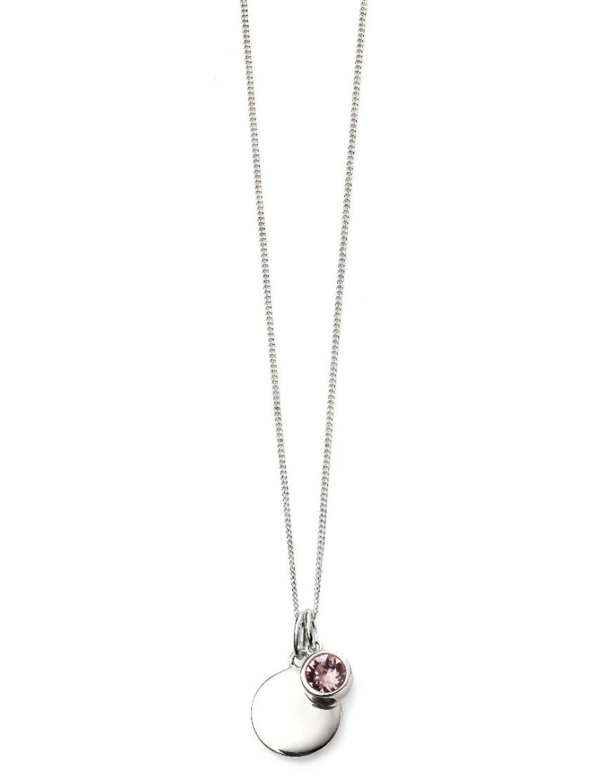 The Birthstone for June - Light Amethyst. Believed to bring good luck and joy, Light Amethyst means you are compassionate and imaginative. Made with swarovski crystal and sterling Silver. ENGRAVABLE disc pendant.
