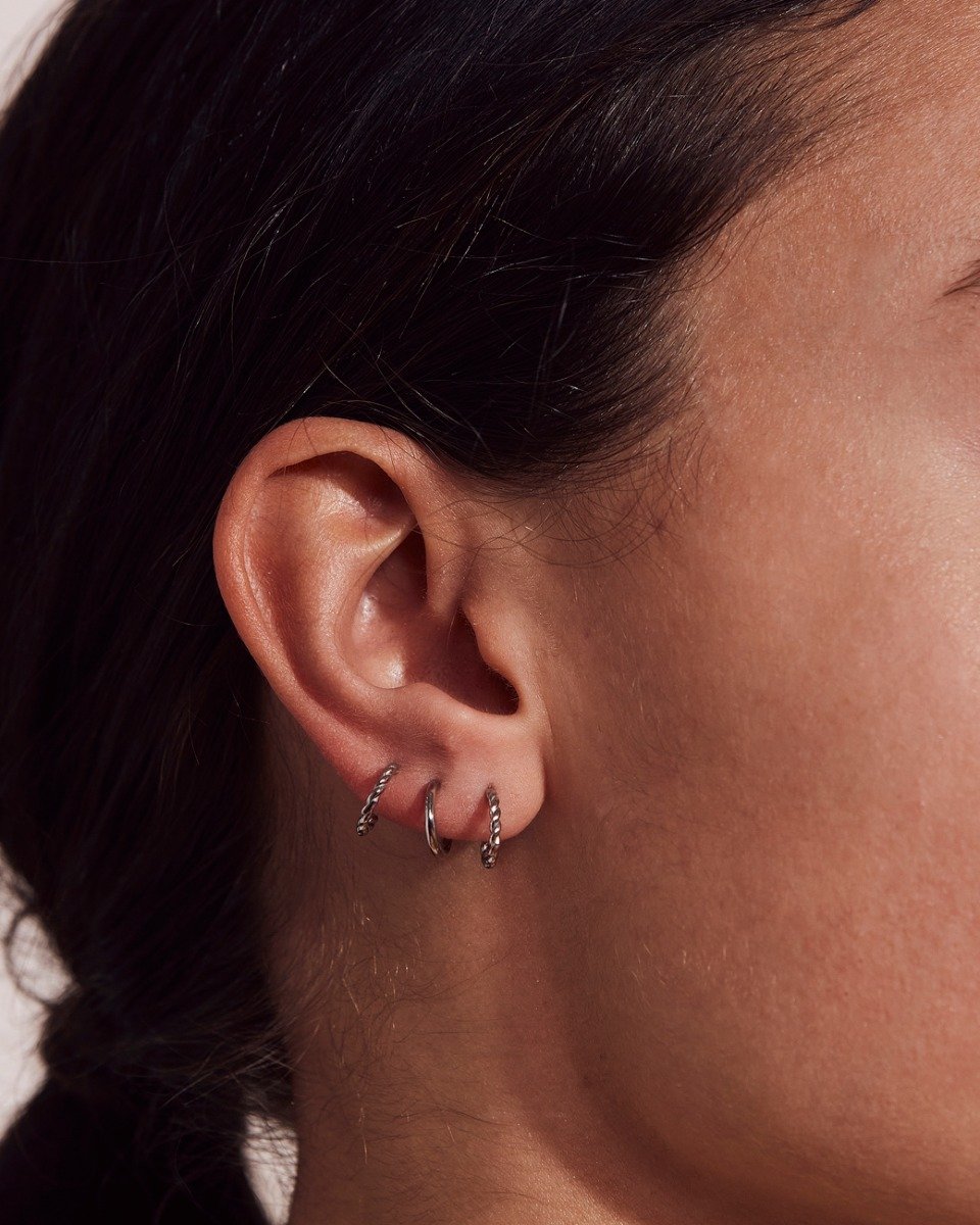 The Duo Pair Creoles Steel earrings includes two pairs of earrings, one with a smooth finish and the other from the popular Rope series, which you can freely mix and match. This versatile set comes in polished stainless steel.