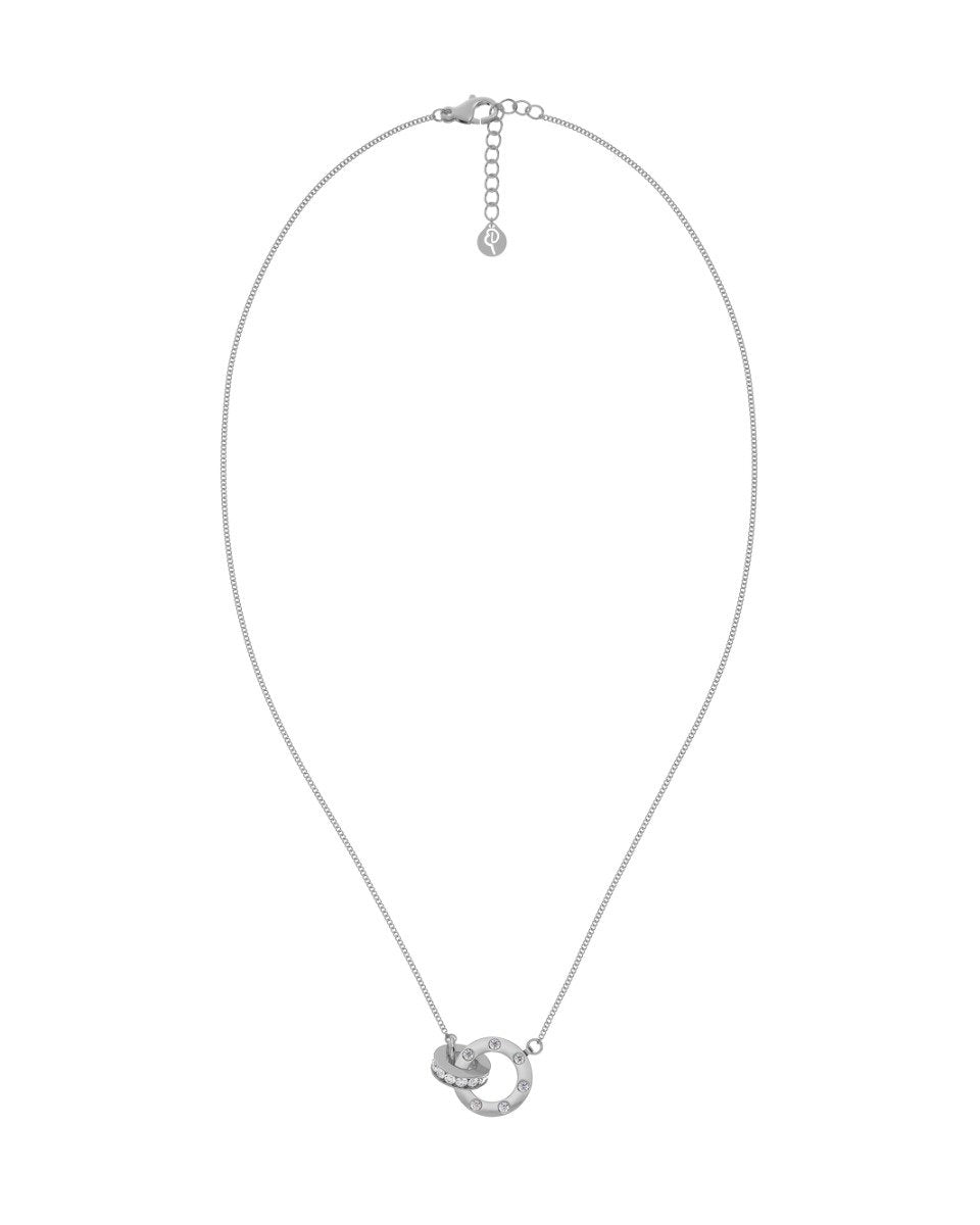 Diameter large ring 14 mm, small ring 10 mm, adjustable length of necklace 40-43,5 cm. Cubic zirconia, shiny stainless steel. Nickel safe. Water resistant.