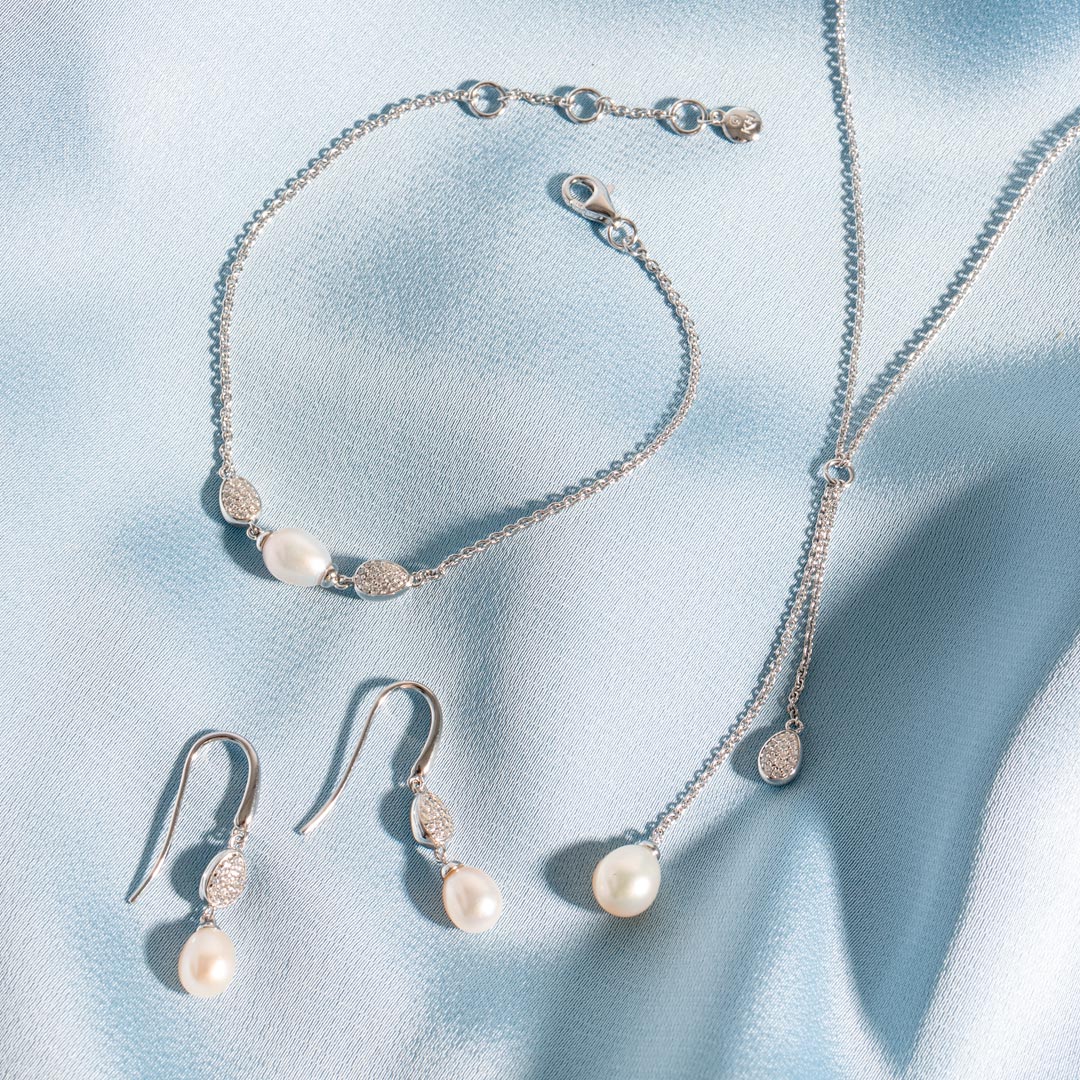 The Coast Pebble Glisten Pavé & Pearl Lariat Style Necklace is a fusion of the timeless appeal of Freshwater Pearls, the enchanting sparkle of Cubic Zirconia, and Kit Heaths best-selling Coast Pebble design. Crafted from premium Sterling Silver, this coastal-inspired necklace features two beautifully cascading split drop pendants in a lariat style, creating the iconic Y-shape especially suited for lower necklines.