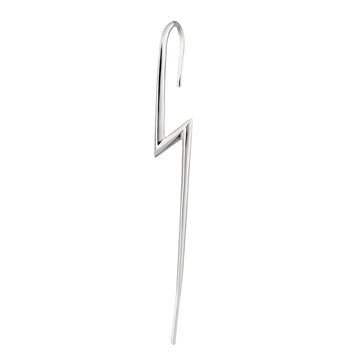 A unique and edgy design this lightning bolt ear crawler is sure to make an impact to your look. Crafted from sterling silver with rhodium, this statement bar earring features a loop that hooks over the top of your ear like an ear cuff while the other end acts like a stud earring. A modern ear pin with a jazzy lightning bolt motif it has been faceted to reflect the light for a stunning shine while the back has been left flat to sit comfortably when worn.