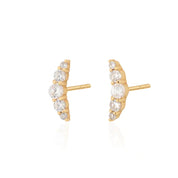 The perfect curved sparkling earring to sit in the helix piercing, or can also be worn in the lobe. Stunning faceted cubic zirconia stones catch the light, and work well as part of a curated ear with other earrings.