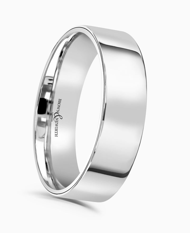 Handcrafted; the flat top profile features a softened comfort fit lining, presented in a medium gauge.