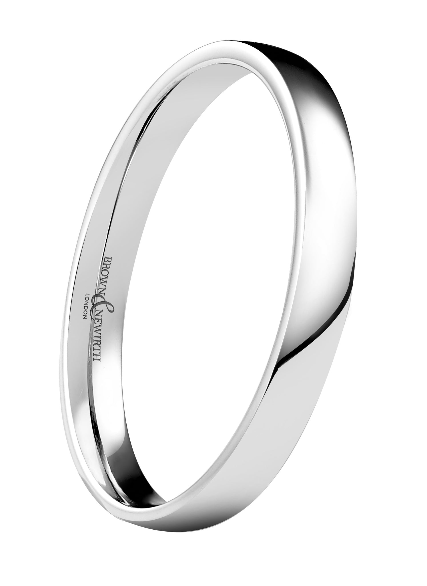 Handcrafted; our low-domed modern court profile features a softened comfort fit lining, presented in a light gauge. Our wedding bands are hand rolled from a single piece of metal for the most luxurious and durable finish.