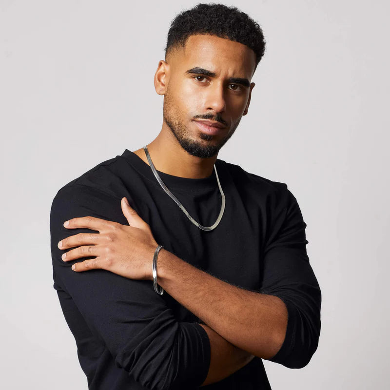 Sleek and understated, this necklace is characterised by its fluid silhouette and refined finish. Designed to rest effortlessly against the neckline, it offers a clean, contemporary look that elevates everyday style. Subtle texture adds depth and movement, resulting in a piece that feels both modern and timeless.