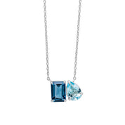 Crafted in 9ct white gold, this necklace boasts a mesmerising combination of London blue topaz and sky blue topaz, creating a harmonious symphony of colour and form.