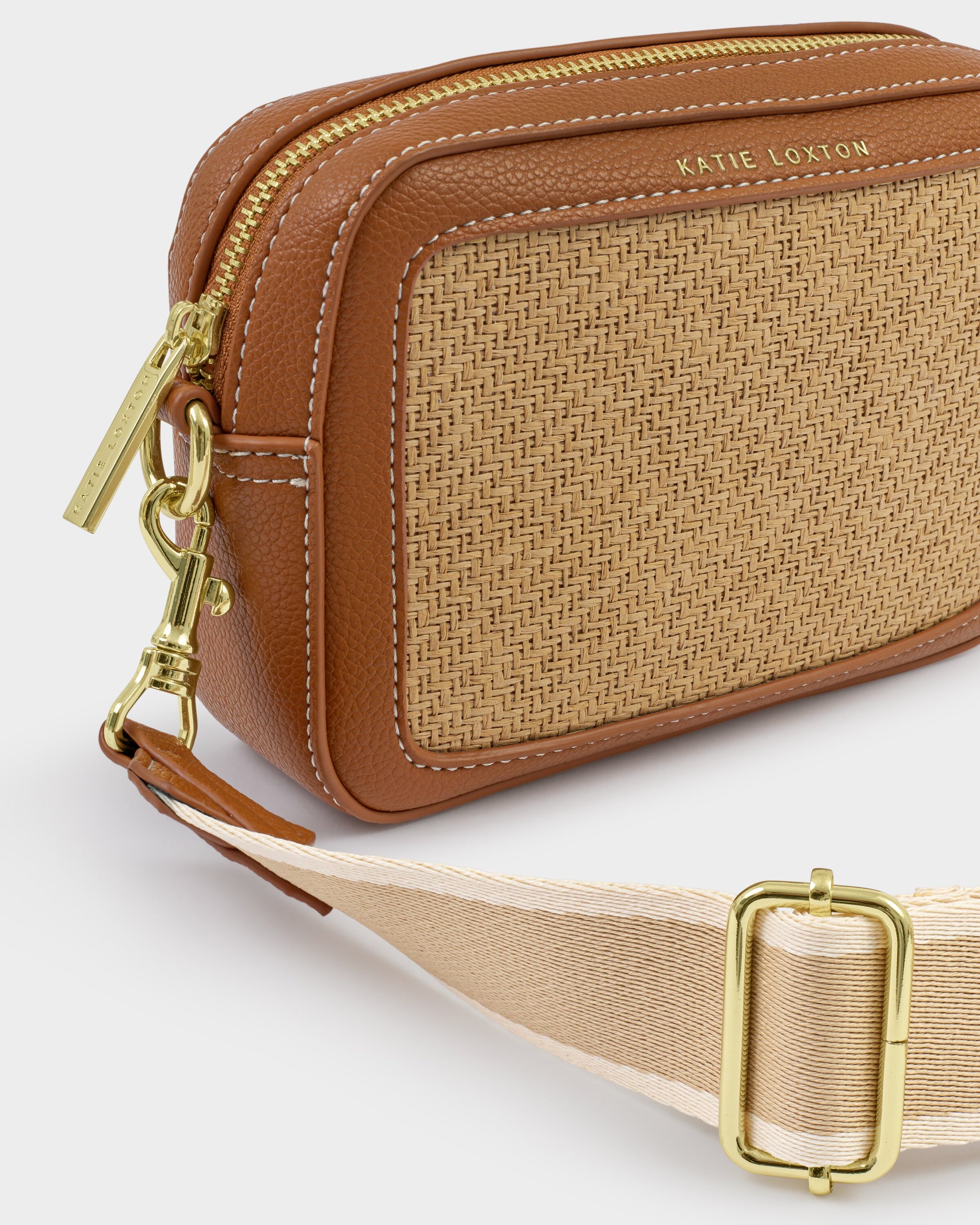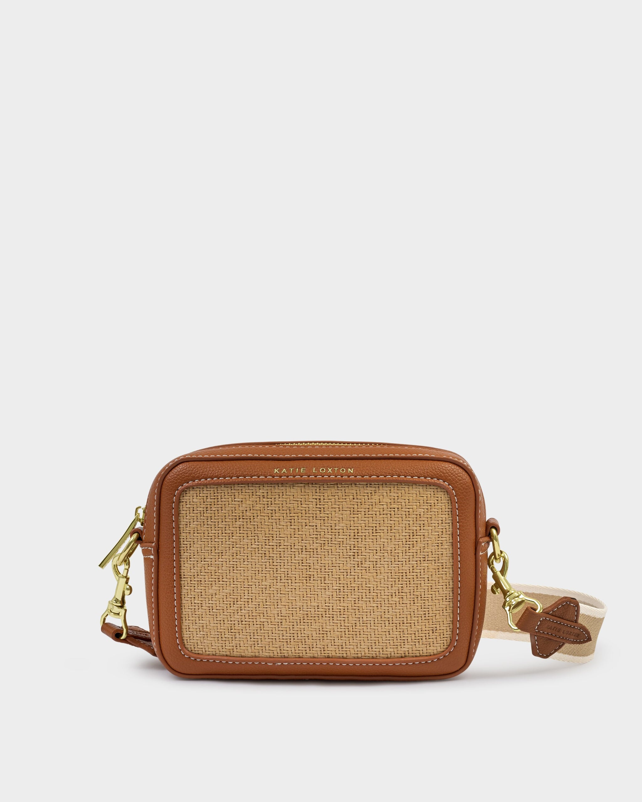 Katie Loxton | Avery Raffia Small Crossbody bag - Natural Raffia & Cognac