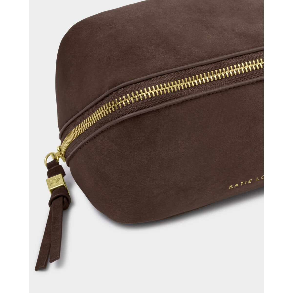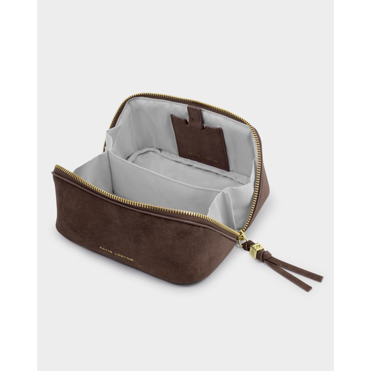 Katie Loxton | Fold Out Mirror Make up Bag - Chocolate Suedette
