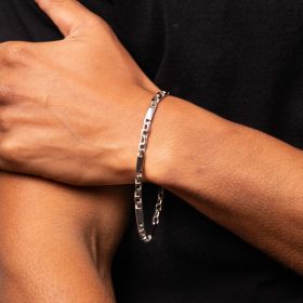 A super sleek modern bracelet that ticks every box for style and practicality. Crafted in stainless steel, and featuring a smooth curved link design, this bracelet doesn't carry the weight of a standard gents bracelet, weighing in at just 8 grams.