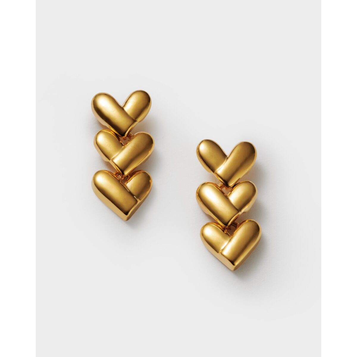 Heart Link Waterproof Gold Earrings are designed in durable 18K Gold PVD Coating, meaning they are waterproof, sweat-proof, and life-proof. Featuring a stacked heart design.