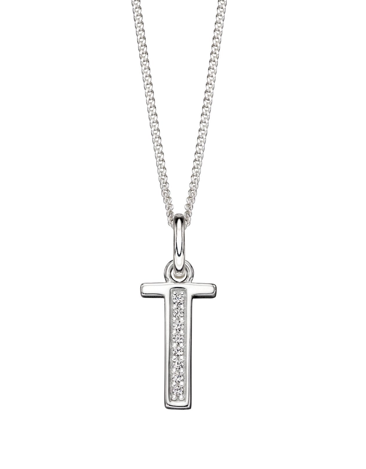Give a special, personalised gift with the art deco initial ‘T’ pendant. Featuring 9 sparkling cubic zirconia stones set into 925 sterling silver and polished off with an anti-tarnish finish. Wear alone or pair with the Swarovski crystal birthstone pendants to further personalise your gift. Initial comes with a 18" Sterling Silver chain.