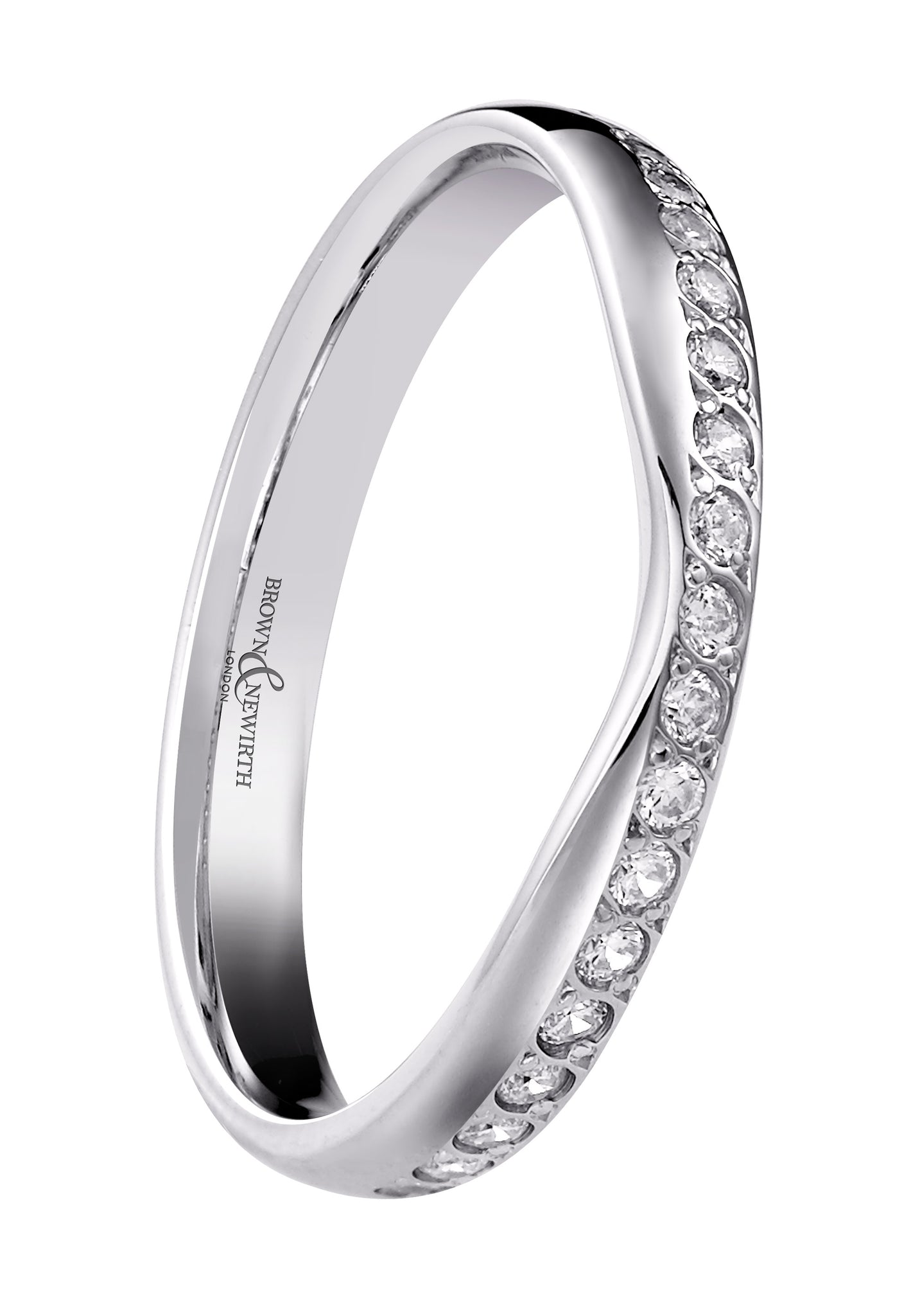 9ct White Gold shaped Wedding band - 19 x .011 brilliant cut diamonds across the shoulders of the ring.