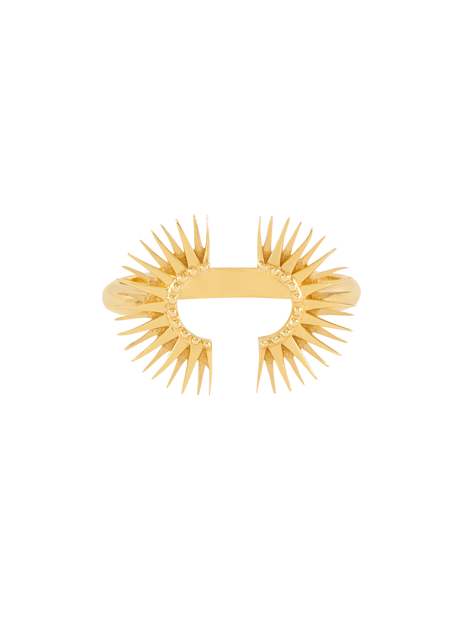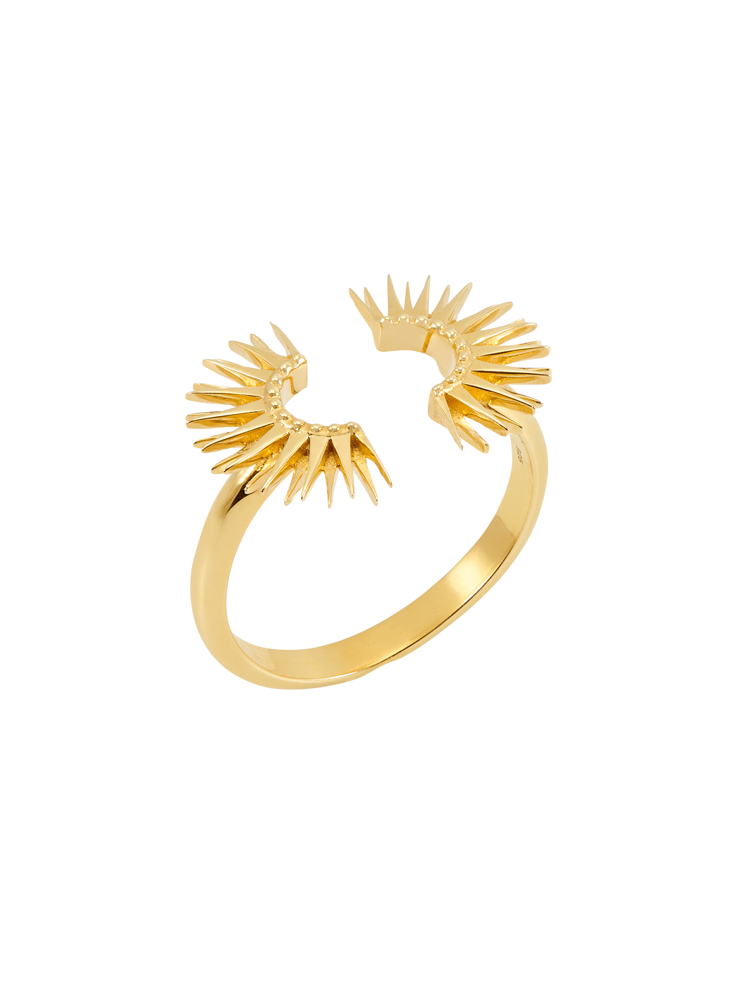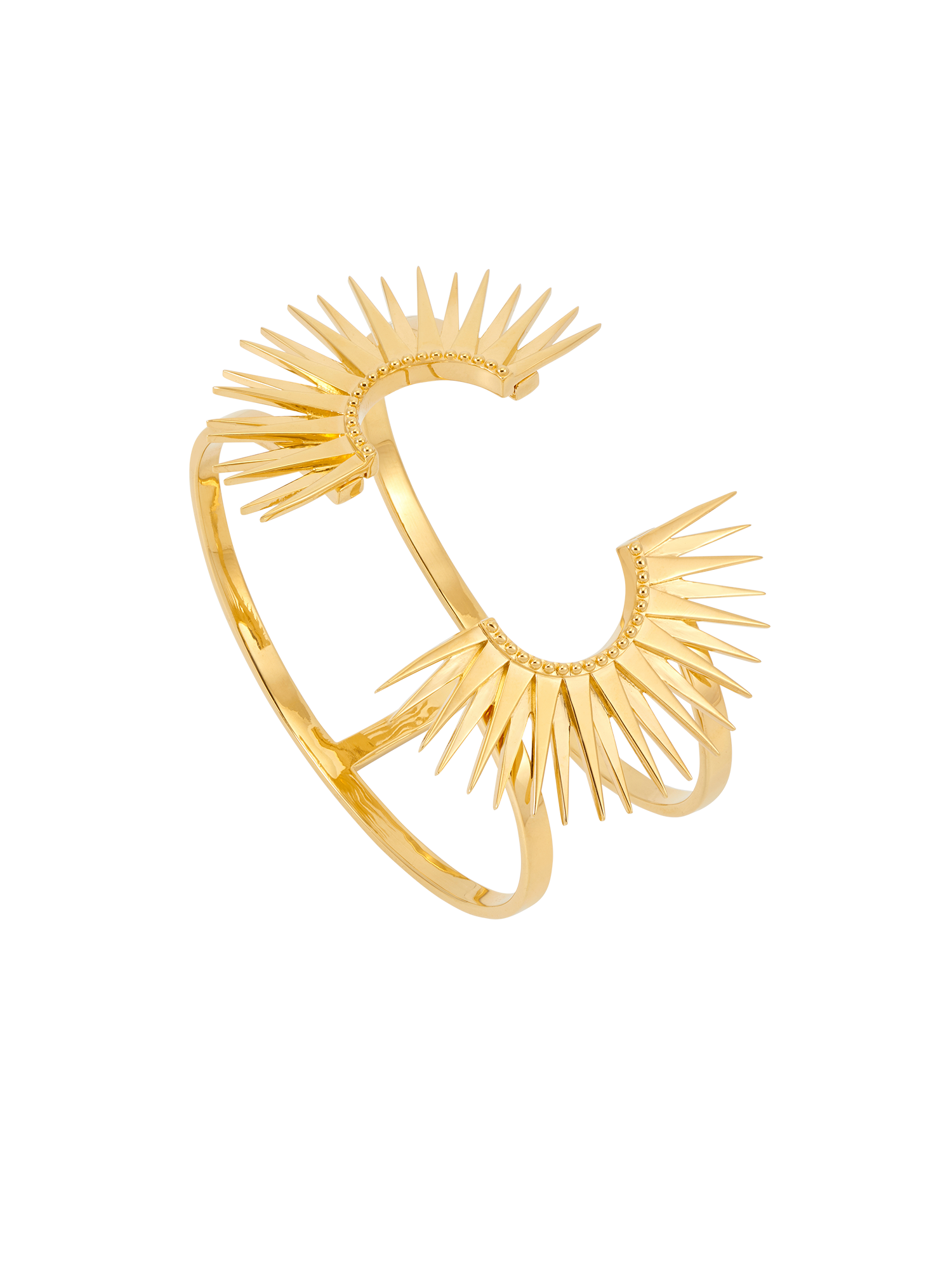 Radiate Brilliance. The Electric Goddess Statement Cuff is designed to bring a boost of both glam and edge to your look. Hand-crafted from 22ct gold plated recycled silver, this unique, adjustable-size cuff bracelet can be gently pushed in or out, to fit any wrist size.