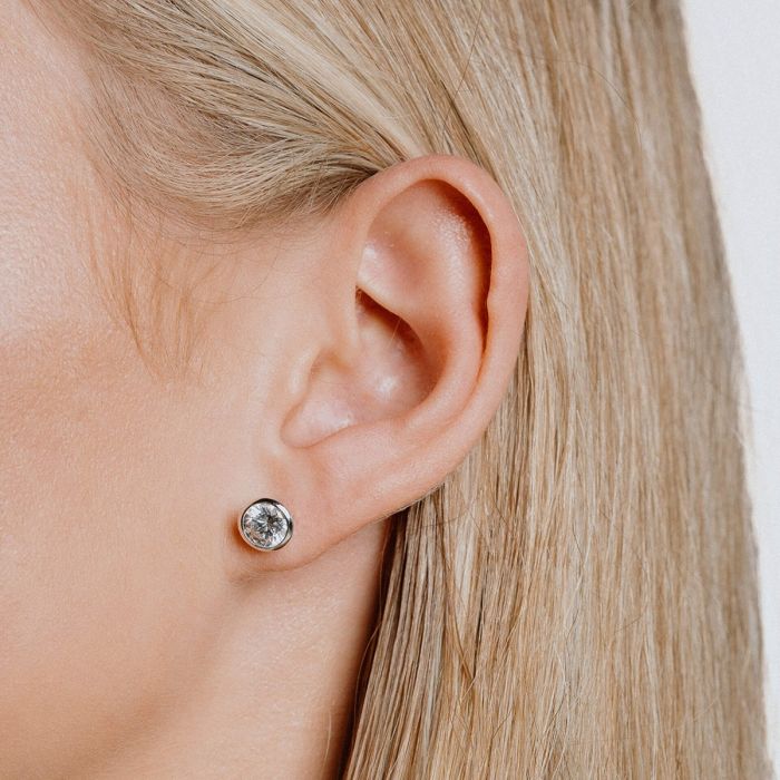 The Carat Collection. The perfect pair of everday wear cubic zirconia set rubover setting studs. 1.0ct size. Made from triple plated Sterling Silver, with platinum, palladium and rhodium. Exquisite beauty at its very best.
