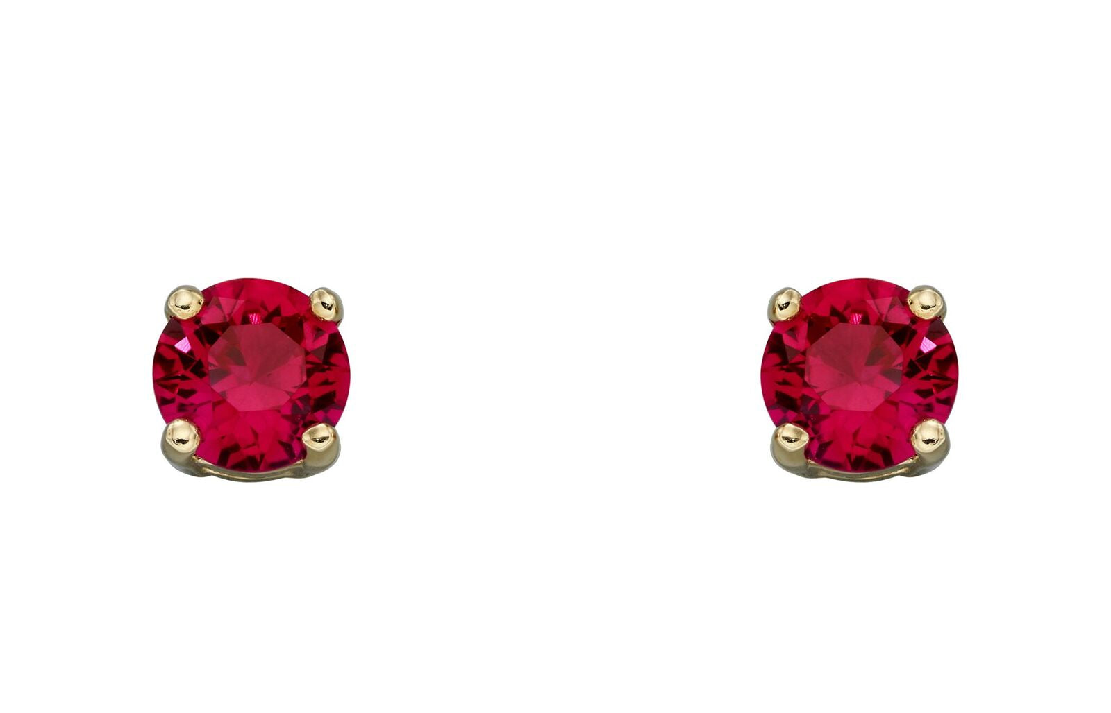Perfect for gifting these studs feature a single round Ruby stone set into 9ct yellow gold and finished with an anti-tarnish coating.