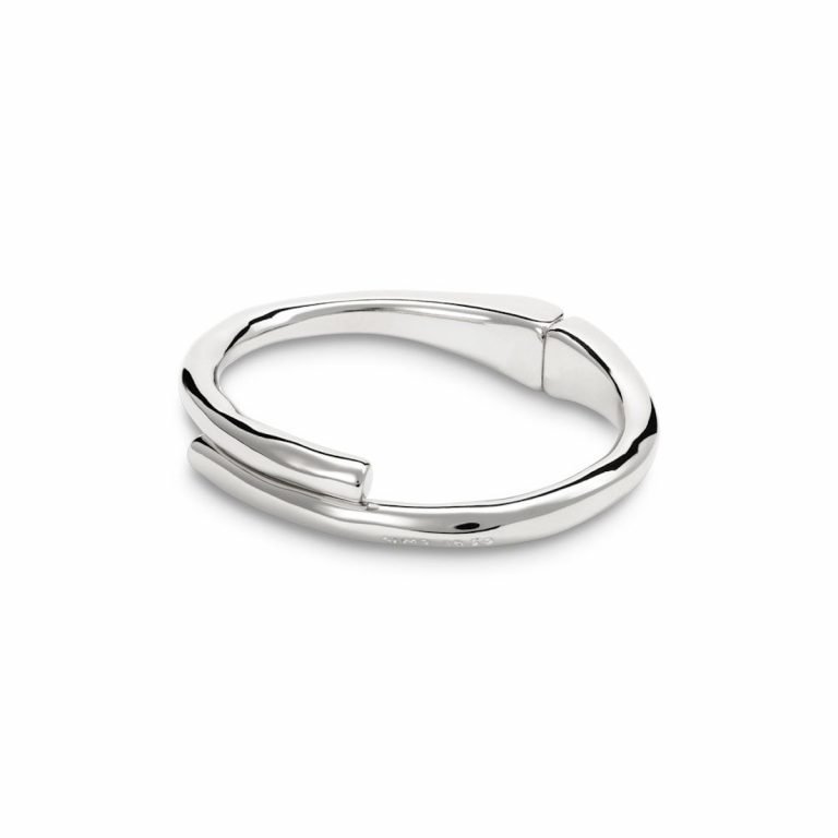 The Meeting Point bracelet is a solid, tube-shaped piece. It features a concealed spring clasp, combining practicality and elegance. Carefully handcrafted in Spain using artisan techniques on a silver coated metal alloy. Wear this bracelet with other UNOde50 pieces to make your jewellery collection a must-have.