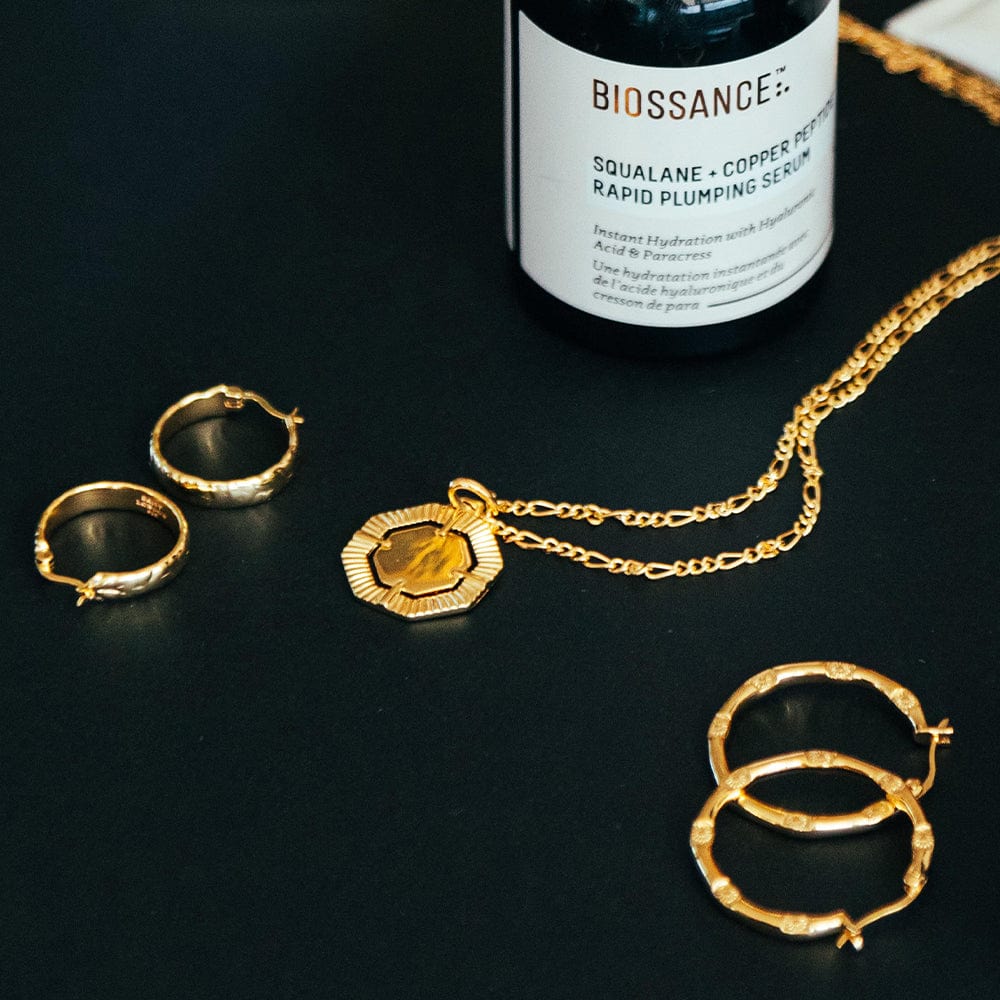 The Estée Lalonde Octagonal Necklace is a fusion of a vintage style piece reworked with a modern day edge.Textured, tactile and weighted; this handcrafted necklace features a large octagonal pendant with cut-out detailing hung on an figaro chain.
