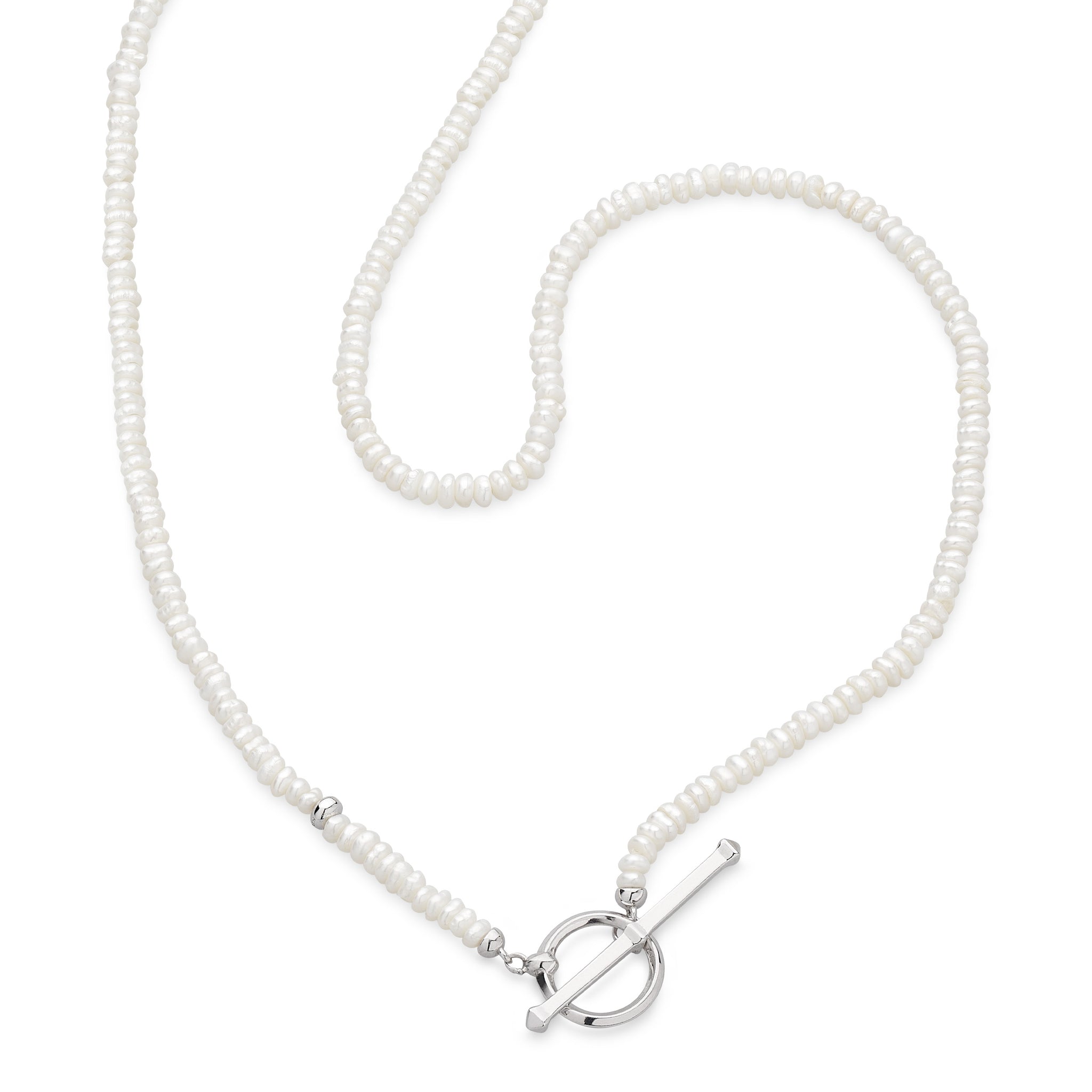 Perfectly executive in its demure style, the Astoria freshwater pearl necklace is a classic piece that will keep on giving time and time again. Timeless in every sense, the small seed-like pearls form a simple 18-inch string to sit close to the neck, finished with a feature T-bar clasp suitable to be styled any way you like — to the front, back or even to the side!