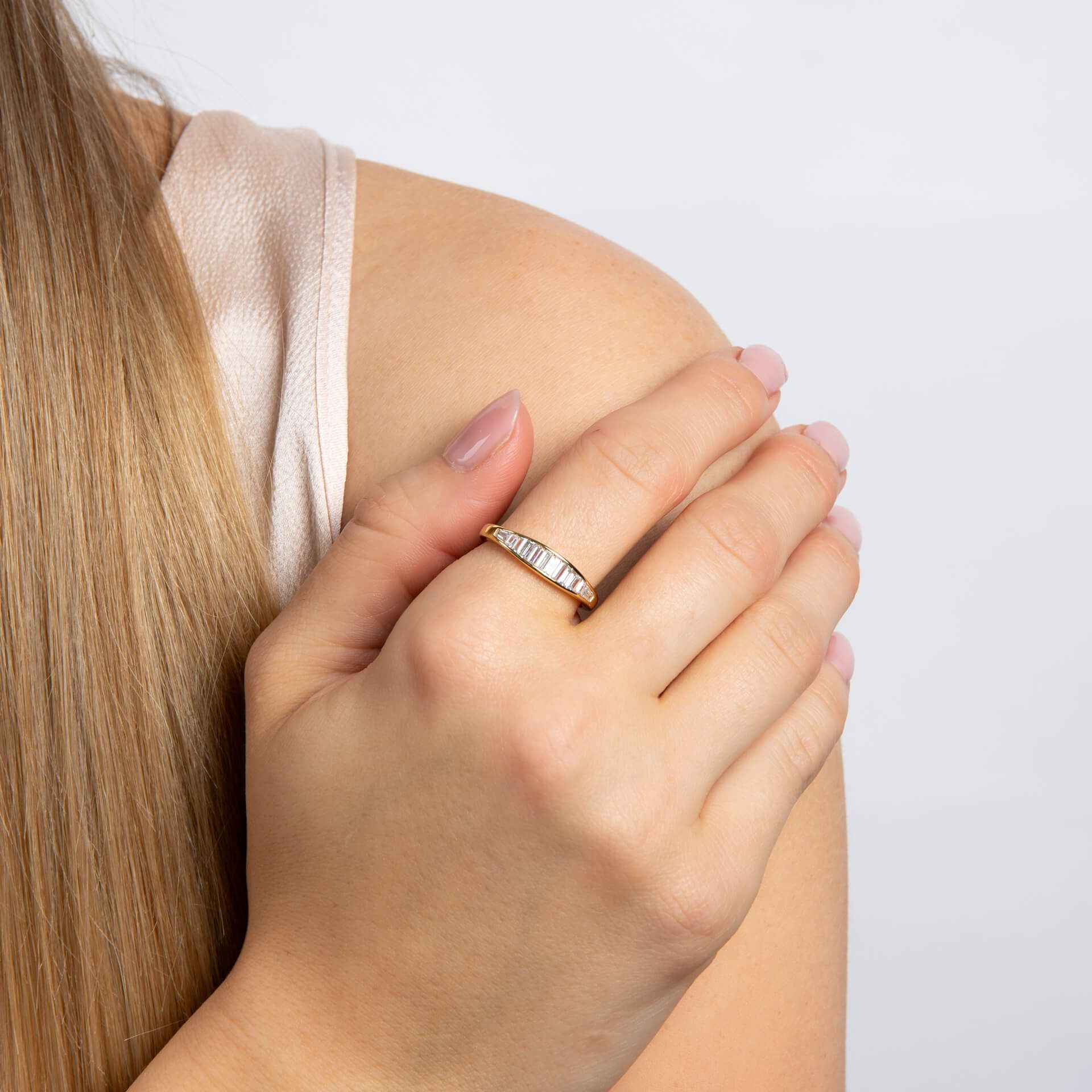 Set with stunning Diamonfire zirconia stones, their baguette shape catches the light with every movement, creating a radiant, full-glam sparkle. Crafted in sterling silver and gold plate, this ring exudes timeless sophistication with a modern edge.
