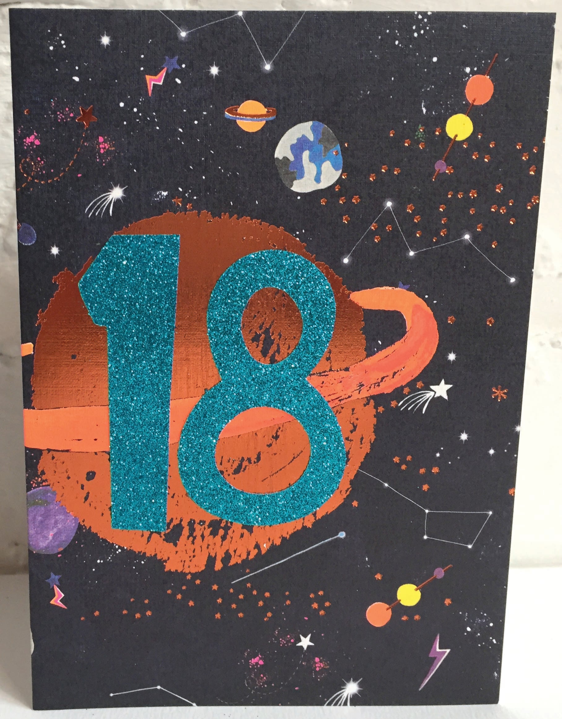 Created by Paper Salad Printed with neon inks and luxury copper foil on textured FSC board and hand finished with glittered numbers. Individually cello wrapped with a neon orange envelope. 175mm x 125mm. Blank inside.