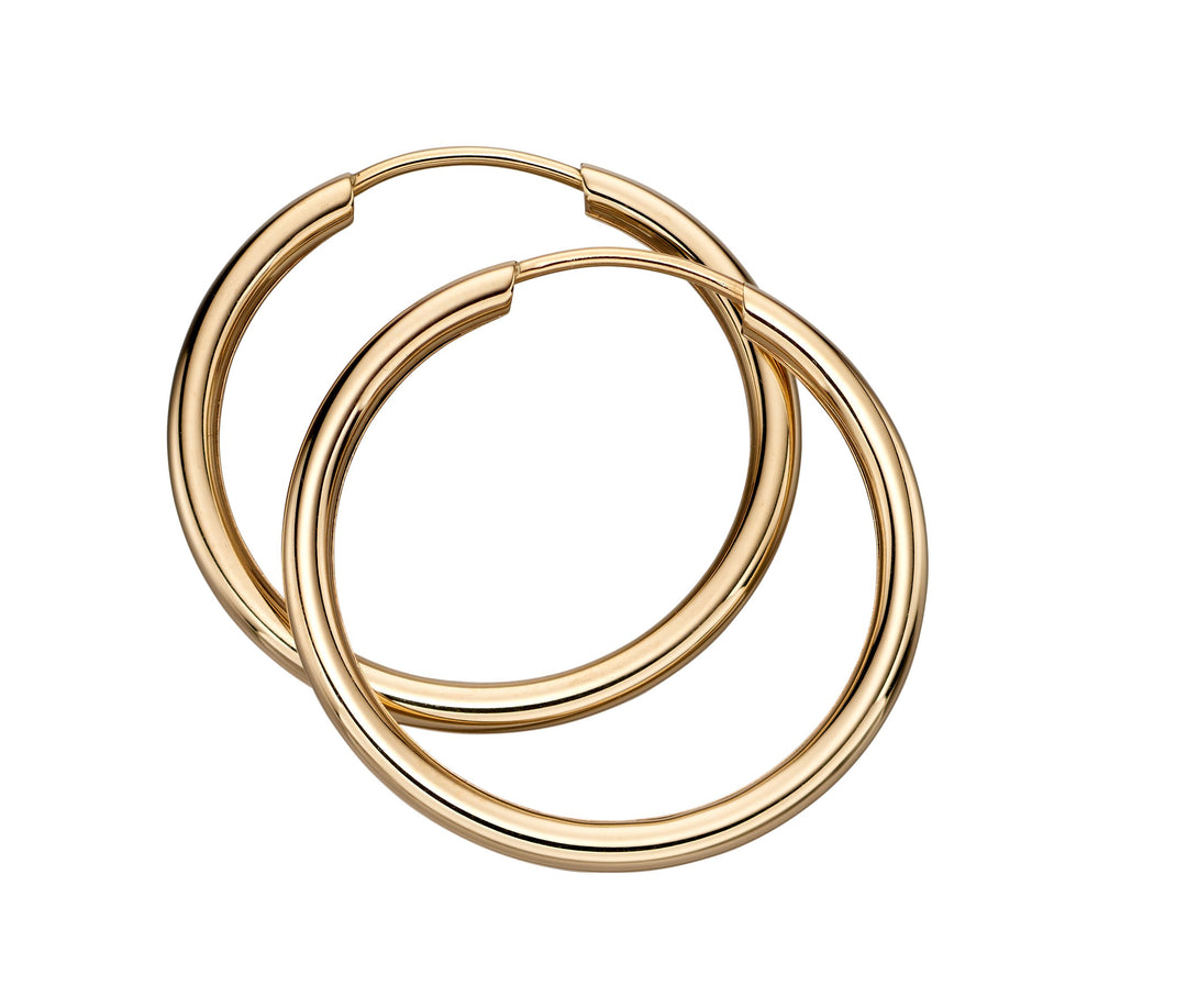 9ct Yellow Gold 20mm sleeper hoop earrings with seamless fastening. One Size.