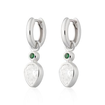 A dainty cubic zirconia stone sits above the crystal drop, complimenting it beautifully with a stunning pop of emerald green hues.
