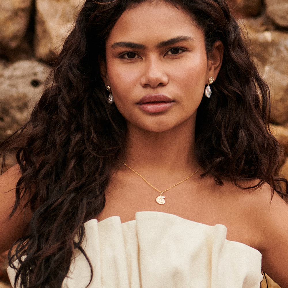 Daisy London | Pearl & Shell 18ct gold plate Pendant Necklace