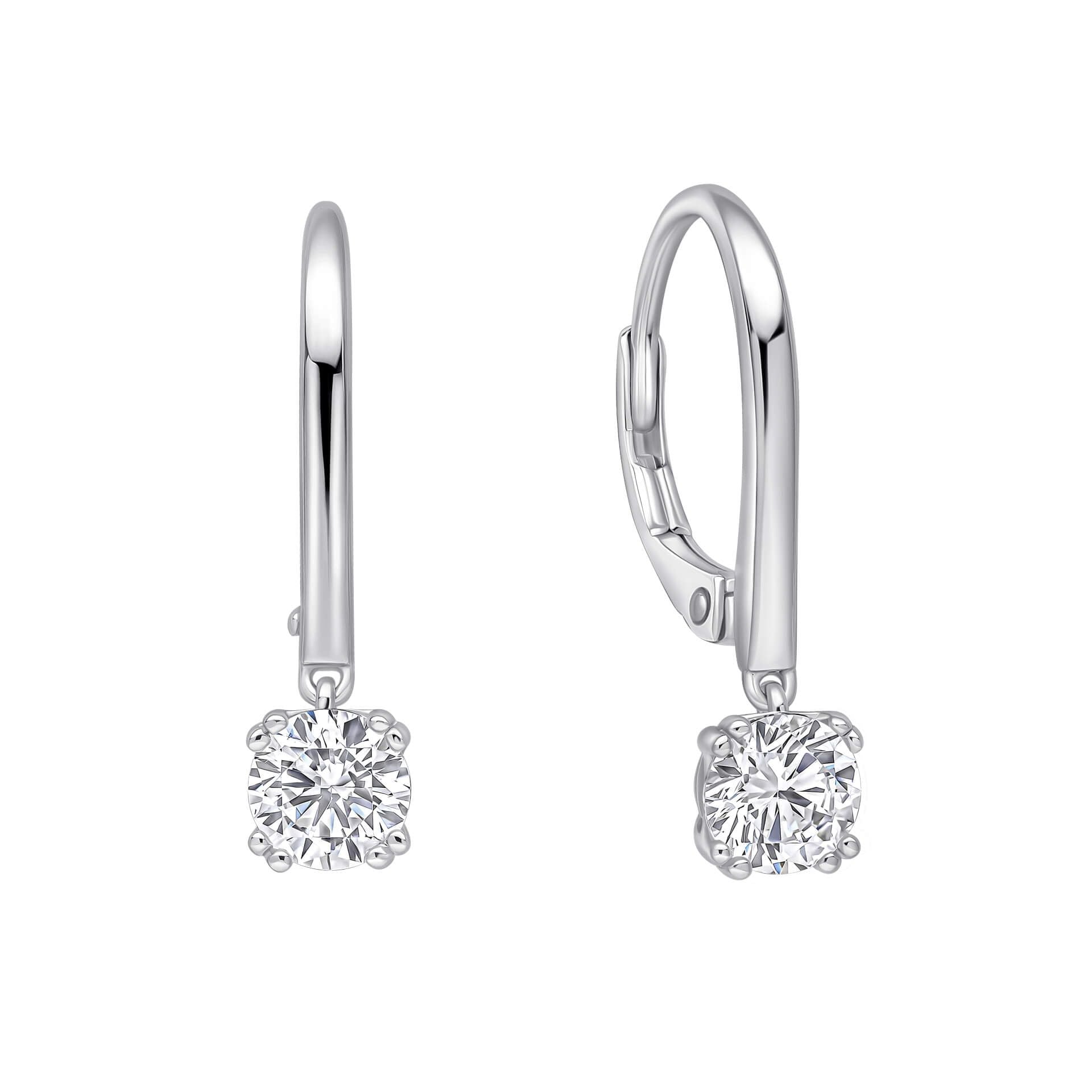 These 0.5ct solitaire French hook earrings bring effortless brilliance to any jewellery collection, featuring a classic round cut Diamonfire zirconia stone set in a refined double claw setting.