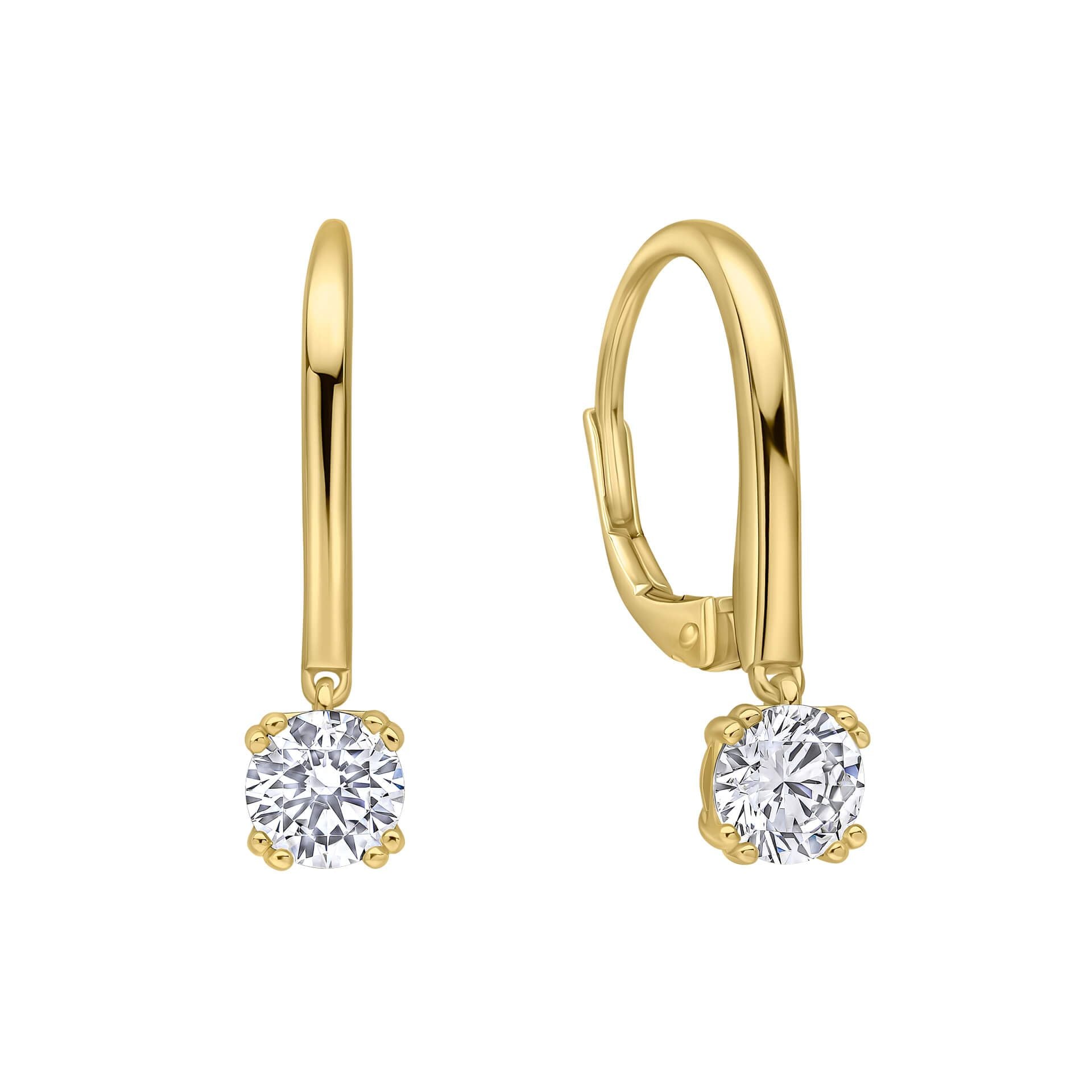 These 0.5ct solitaire French hook earrings in gold plate bring effortless brilliance to any jewellery collection, featuring a classic round cut Diamonfire zirconia stone set in a refined double claw setting.