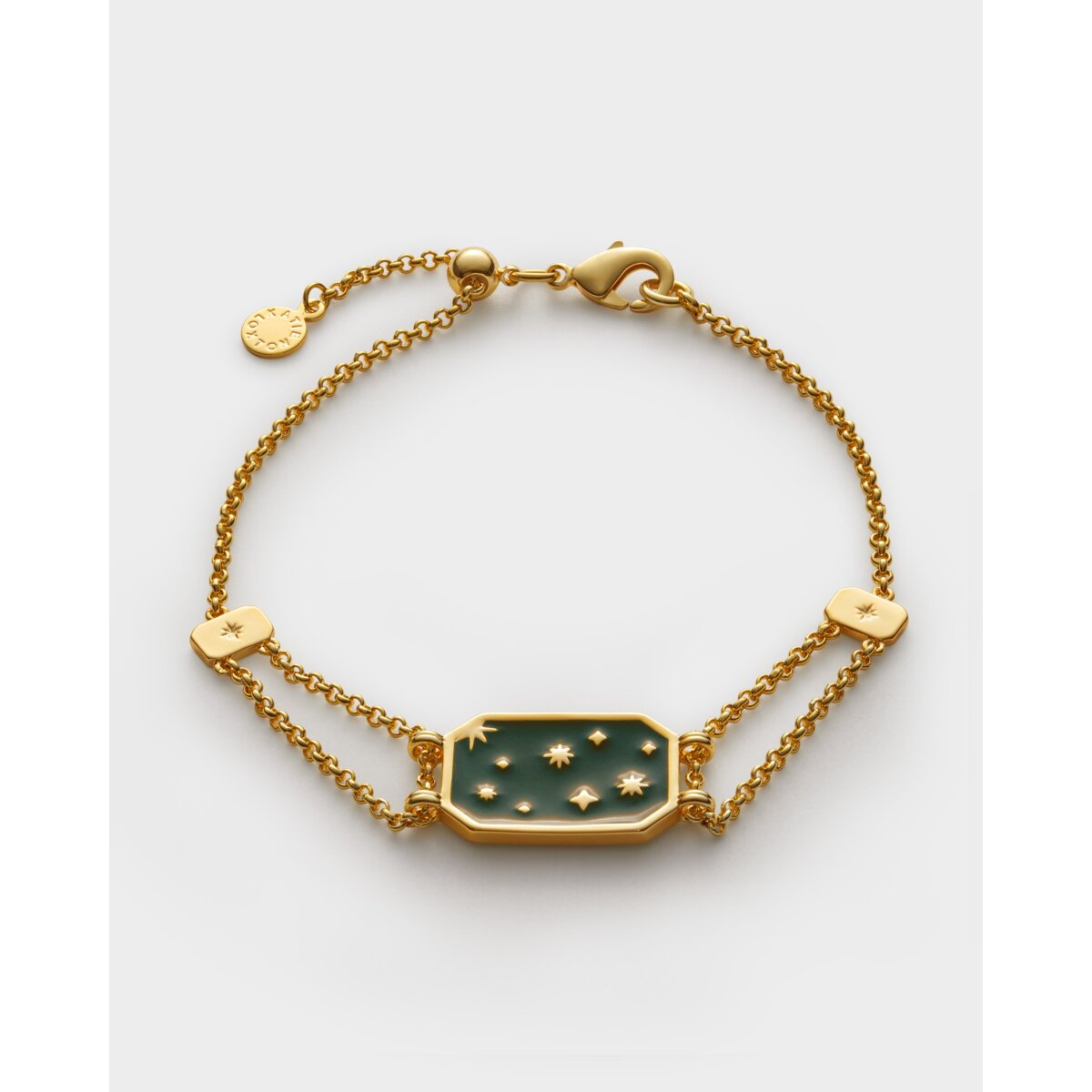 Elpha Bracelet is made from durable 18K Gold PVD coating, making it certified waterproof, sweat-proof, and life-proof. Featuring a beautiful pendant with a scatter of stars and a night-sky enamel background, this piece exudes celestial charm.