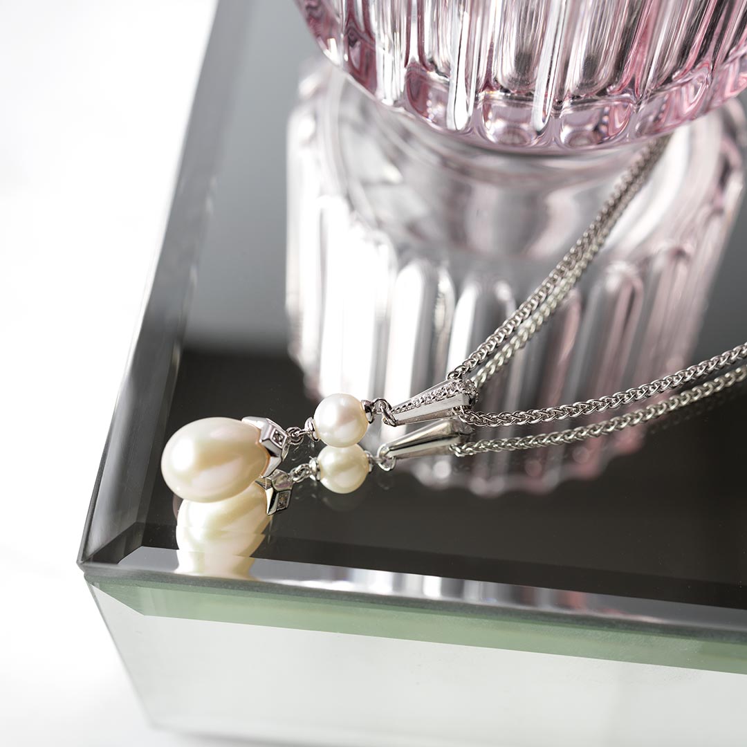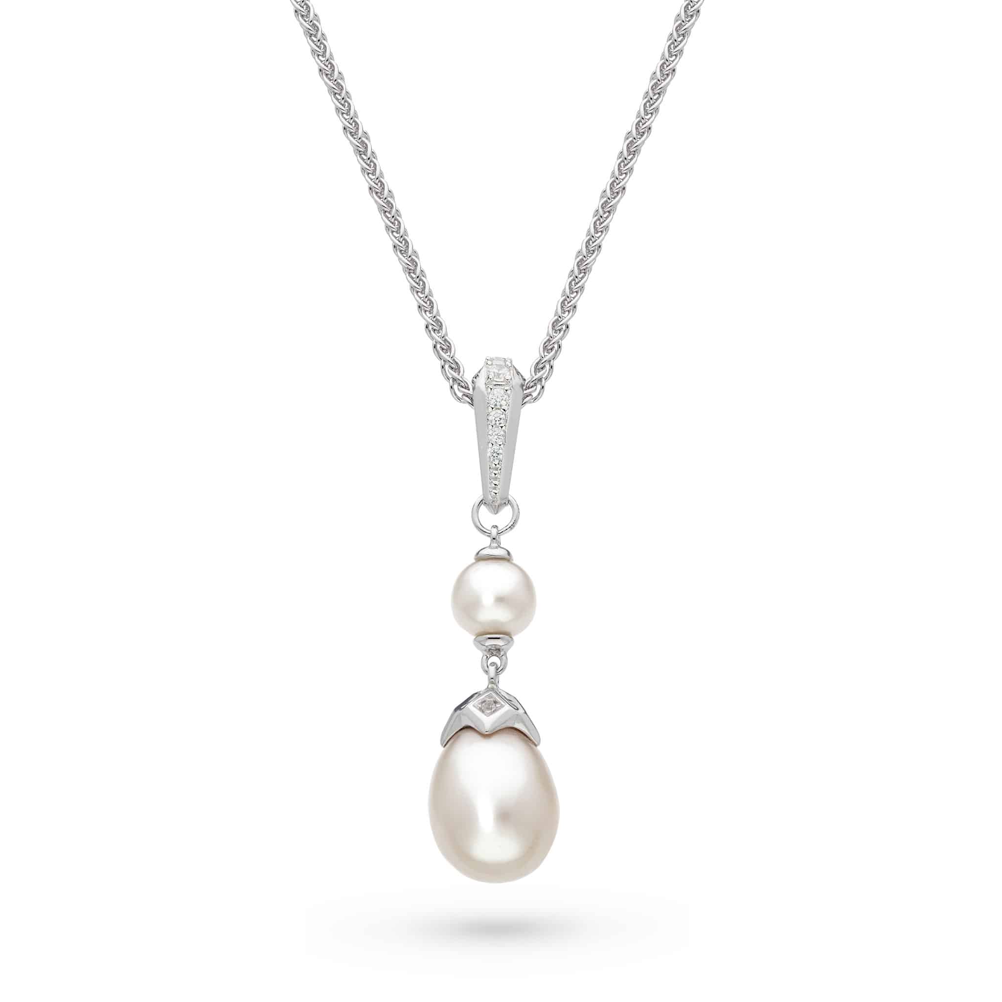 Gracefully glamorous, Kit Heaths Revival Pearl Glitz necklace features two perfectly complementing freshwater pearls in contrasting shapes and sizes. Detailed with micropavé, the pendant elegantly slides along the delicately styled sterling silver chain.
